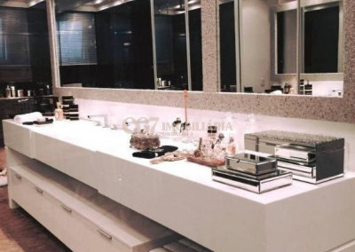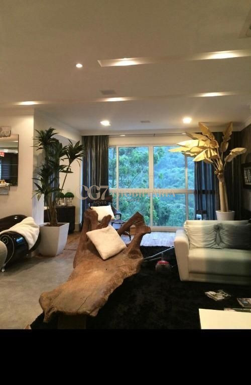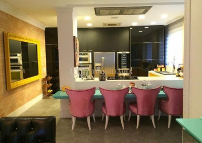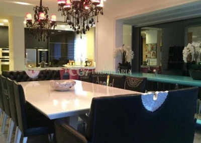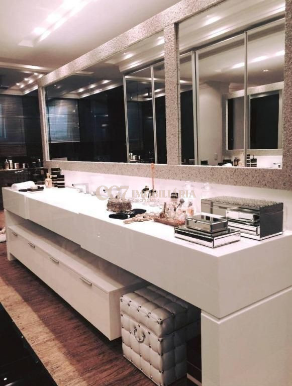 PENTHOUSES TAMBORÉ belíssimo apartamento de 367 metros quadrados, totalmente mobiliado. Agrega sofisticação, tecnologia e conforto. Cada detalhe foi cuidadosamente planejado. Possui 4 dormitórios, sendo 3 suítes, 5 vagas de garagem, sendo uma garagem box com portão eletrônico e ainda 1 depósito para guardar malas e demais itens. O apartamento possui automação completa de som e iluminação e conta também com ar quente e frio e uma charmosa lareira. O terraço gourmet integrado com a sacada possui churrasqueira, um maravilhoso spa (estilo Jacuzzi) de 8 lugares para relaxar em frente a uma vista deslumbrante da reserva Tamboré ideal para desfrutar com a família e receber amigos. A cozinha conta com uma torre de cocção da Kitchenaid contendo forno, micro-ondas, gaveta de aquecimento e lava-louças, inclui também uma geladeira side by side e uma adega. Repleta de armários, espaço para guardar mantimentos, louças, etc. Possui duas pias na bancada em "L" pra quem realmente gosta de cozinhar, uma das pias tem filtro para lavar os alimentos e cooktop também da marca Kitchenaid, tudo para facilitar o preparo dos alimentos. Os banheiros das suítes possuem louças Deca e bancadas de nanoglass. O banheiro da suíte master além do vaso sanitário tem também um mictório com tampa de design alemão. Integrado ao quarto, a suíte master possui banheira dupla de hidromassagem. A outra suíte possui também banheira e cabine de banho. A lavanderia possui dois tanques Deca com tampos de madeira, duas lava e seca, varais e muitos armários, conta ainda com uma pia de apoio para cozinha, no estilo americano e mais duas geladeiras de apoio. O piso na maior parte do apartamento é porcelanato italiano de 1.20 X 1.20. Avalia permuta em terrenos na região de Alphaville ou permuta a ser estudada. cg7imoveis cg7imoveisalphaville