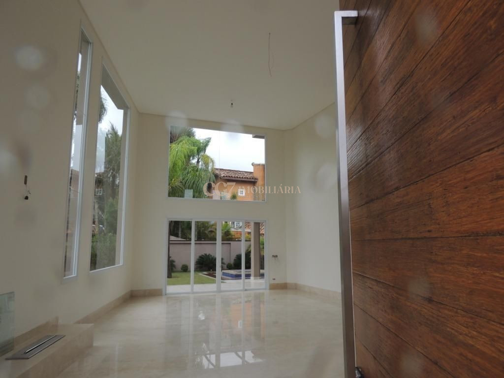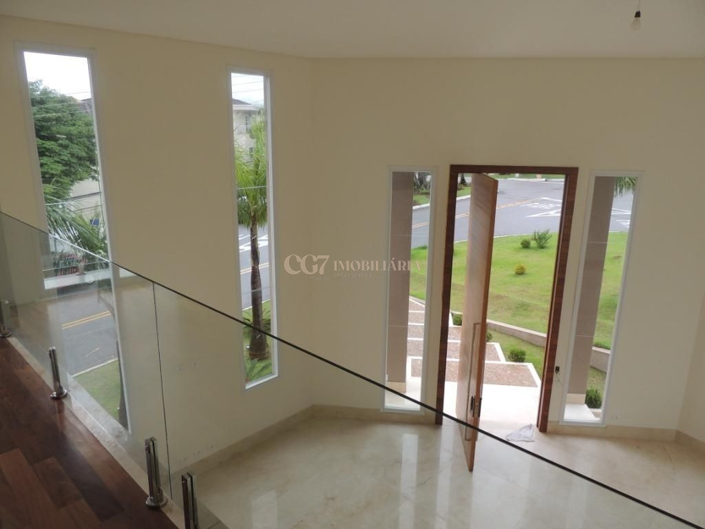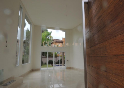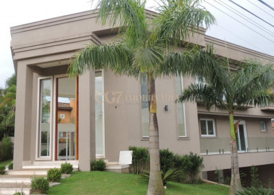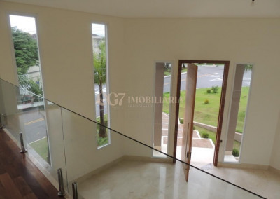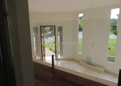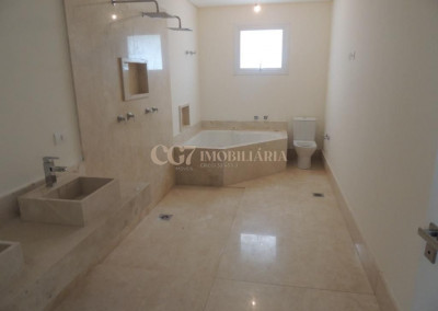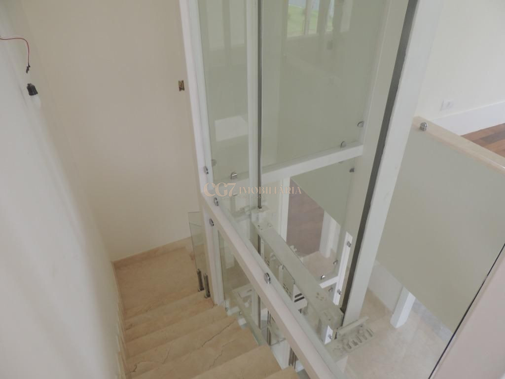 A residência está próxima a portaria e possui finíssimo acabamento em mármore importado Crema Marfil, louças e metais Roca e Deca, imponente porta de entrada com 4,20 m de altura, ar condicionado em todos ambientes, exceto cozinha e sala de almoço (infra), aspiração central (infra), esquadrias em PVC, automação residencial, reservatório para águas pluviais