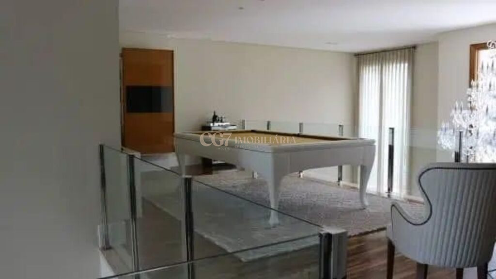Casa de 835m² de terreno à Venda - Condomínio Alpha 10 Características do Imóvel: Terreno: 835 m² Área construída: 740 m² Totalmente mobiliada e decorada com extremo bom gosto Acabamento Prime, com materiais nobres e de altíssimo padrão Porcelanato italiano em todos os ambientes Lustres gregos, que valorizam ainda mais o projeto de interiores Iluminação projetada em todos os cômodos, com automação e controle de cenas Vista permanente para as montanhas, presente em todos os ambientes da casa Distribuição Interna: 5 Suítes amplas, todas com design exclusivo, closets planejados e banheiros espaçosos Suíte master com sala de banho e vista panorâmica 6 vagas de garagem, sendo 3 cobertas Living integrado com pé-direito alto e ambientes de estar, jantar e recepção Cozinha gourmet com ilha central, eletrodomésticos de última geração e marcenaria de luxo Home theater, climatizado e com isolamento acústico Sala com piano de cauda, trazendo sofisticação e charme ao ambiente social Mesa de bilhar profissional, ideal para momentos de lazer Sauna úmida, integrada à área externa Área de Lazer: Piscina com borda infinita, revestida com pastilhas especiais e iluminação subaquática Espaço gourmet completo, com churrasqueira, forno de pizza e bar Ambientes externos amplos, com paisagismo impecável e integração com a natureza Área de descanso com espreguiçadeiras, perfeita para contemplar a vista para as montanhas Sobre o Condomínio Alpha 10 – Alphaville: O Residencial Alpha 10 é um dos mais exclusivos e valorizados de Alphaville, referência em alto padrão de moradia. Entre seus diferenciais estão: Segurança total 24 horas, com controle de acesso rigoroso e rondas internas Infraestrutura moderna e bem planejada, ideal para famílias que prezam por conforto, sofisticação e qualidade de vida Ruas amplas, arborizadas e com áreas verdes preservadas Área de lazer do condomínio com quadras, playground, pista de caminhada e espaços de convivência Excelente localização, com fácil acesso à Rodovia Castelo Branco e próximo aos melhores centros comerciais e de serviços da região Próximo a escolas de referência, como Escola Internacional, Colégio Mackenzie e Objetivo Alphaville Região com supermercados, farmácias, academias, restaurantes e shoppings de alto padrão Destaques Adicionais: Vista única e permanente para a natureza, proporcionando tranquilidade e privacidade Projeto arquitetônico contemporâneo, com integração entre ambientes internos e externos Imóvel pronto para morar, com padrão estético e funcionalidade elevados Ideal para quem busca exclusividade, conforto e localização privilegiada em Alphaville Agende sua visita CG7 Imóveis