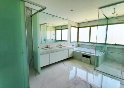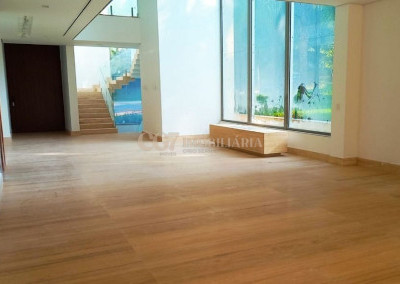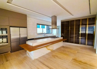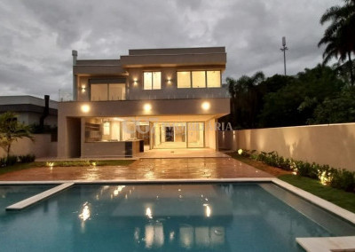 Casa a Venda AT:744m², AC:686,78m², Adicione a piscina de 51,32m², Casa de máquinas de 2,25m², Estonteantes 740,350m², 14,56m² da sauna Caixão perdido para expansão de 240m², totalizando 994,91m² de puro charme São 3 pavimentos servidos por elevador, 4 suítes sendo 1 master com Hidro Pretty Jet automatizada, Bancada em QUARTZO BRANCO, 2 closets Sr. e Sra., e sala íntima Banheiros com metais Deca, repletos de Armários Sala íntima, Escritório, Lavabo com cuba esculpida em Mármore Travertino Navona. Área social e escada em Travertino Navona, Revestimentos Decortiles, Roca e Castelatto. Lareira em Mármore Travertino Navona. Área íntima em assoalho Cumaru e Esquadrias de Alumínio linha Eurotop. Lazer: Espaço Gourmet completo Florense com churrasqueira a gás, Florense Evol, Bar refrigerado Art Grill bancadas em Preto Absoluto e revestimento Oxydem Castellato, Home Theater, Piscina com revestimento em Pedra Hijau aquecida com Spa, Prainha e deck Castelatto, Edícula completa em Mármore Travertino com Sauna a vapor, Adega climatizada para 380 rótulos - Joshua Adegas. Serviços : Cozinha Florense com eletrodomésticos Gorenje Linha Stark, Bancadas em Quartzo e Techlam e revestimento Cubus Pigues Mosarte, Lavanderia com Máquina de Lavar e secar, Dispensa, Louceiro, Copa intima no andar superior, Garagem para 9 carros e previsão de tomada para veículos elétricos, Depósito, Suíte de serviço, escada de serviço. Sistemas: Aquecimento Solar com apoio elétrico, Geração de Energia fotovoltaica com micro inversores, de 500KWH/mês expansíveis até área total do telhado. Recirculação de água quente. Cisterna de 10.000 litros de água de reuso para sistema de irrigação do Jardim. Aspiração central. Automação da área social e jardim com preparação e infra de Automação central para todos os ambientes. Ar-condicionado dutado nas áreas sociais. Ar-condicionado em todas as suítes, home e escritório. Piscina com Trocador de calor e Hidromassagem. cg7imoveis cg7imoveisalphaville alphavillesp