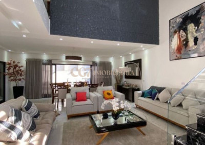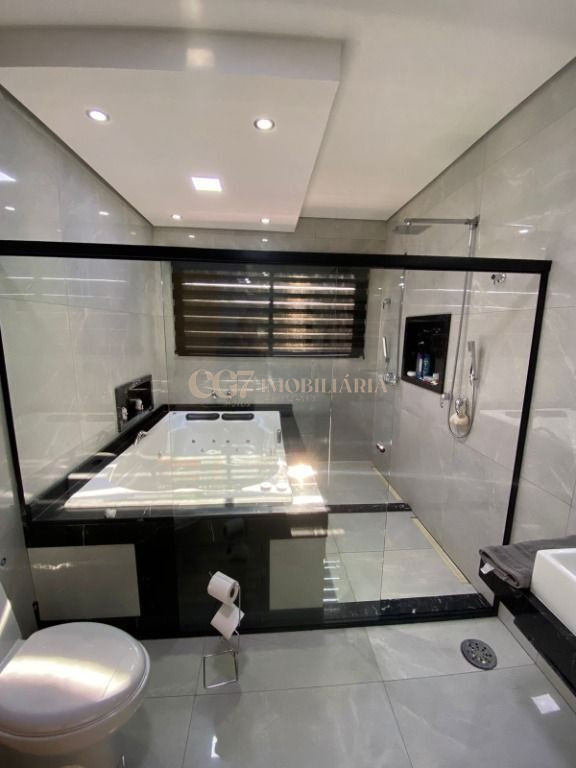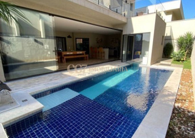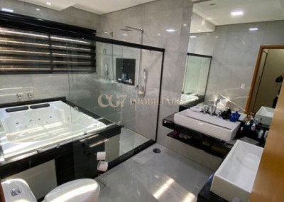 Oportunidade de morar em um Residencial de Alto Padrão com Clube interno com lazer completo. 450m² de terreno aclive 530m² de construção Imóvel com apenas 3 anos de construção Subsolo - garagem ampla para 3 carros cobertos + vagas na rampa, depósito com 6m2 + banheiro, entrada rápida para lavanderia e cozinha. Primeiro pavimento - hall acesso social com pé direito duplo, escritório com varanda, home Theater com varanda, lavabo, sala de estar ampla com pé direito duplo, sala de jantar, cozinha completa integrada com sala + área gourmet, lavanderia com banheiro e acesso à parte externa do imóvel, área gourmet super espaçosa com churrasqueira, televisão, banheiro externo, fechamento de vidro, piscina com prainha, cromoterapia, sauna úmida com mergulho direto para a piscina, ducha externa Segundo pavimento - 5 dormitórios sendo 4 suítes, todos com varanda, passarela linda, funcional e decorativa, todos as suítes com closet, master com ducha e bancada dupla + jacuzzi Casa com excelente acabamento, áreas molhadas com revestimento total ( até o teto ), linha de metais importados, vasos importados monobloco, possuem assentos com amortecedores, planejados em todo imóvel, inúmeros detalhes em mármore, parede do pé direito com revestimento 3D, aquecimento solar + boiler com controle de temperatura, esquadrias de alumínio preto linha gold, persianas elétricas, iluminação em led em todo imóvel, todas as portas de madeira são maciças, linha de fechaduras premium, ar condicionado em todas as suítes + home e muito mais. cg7imoveis