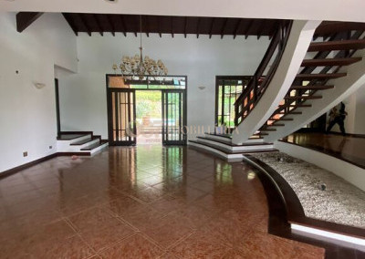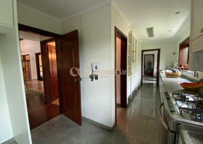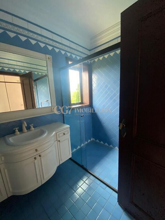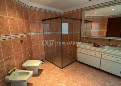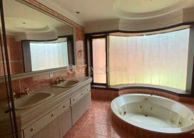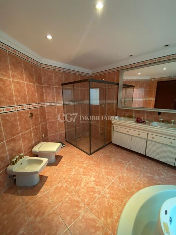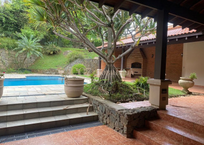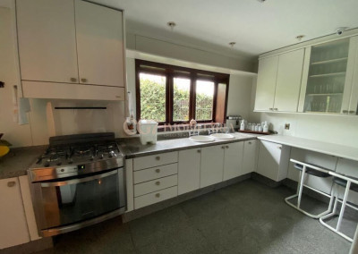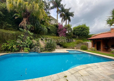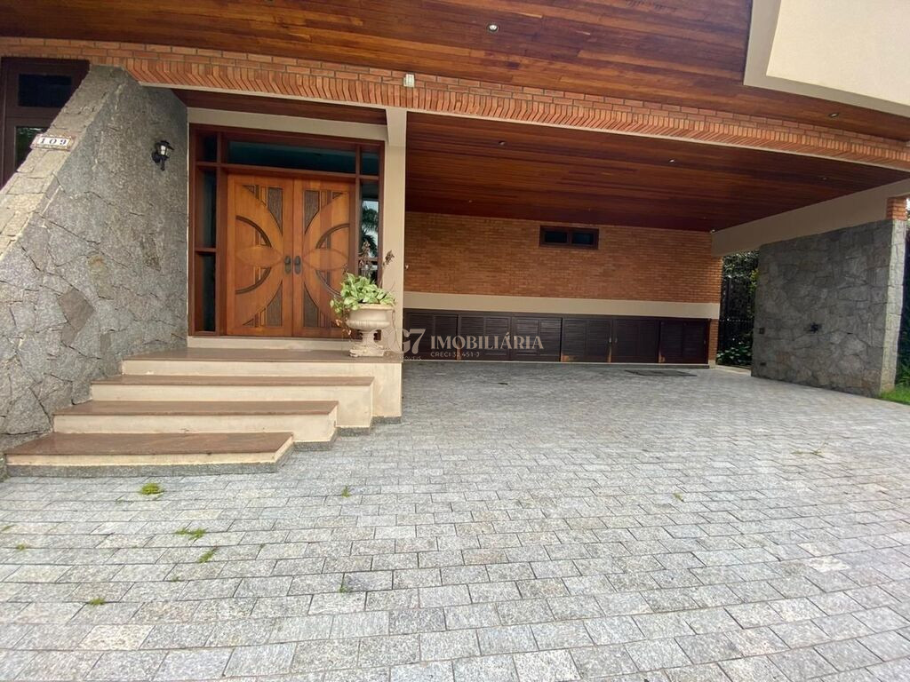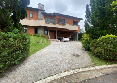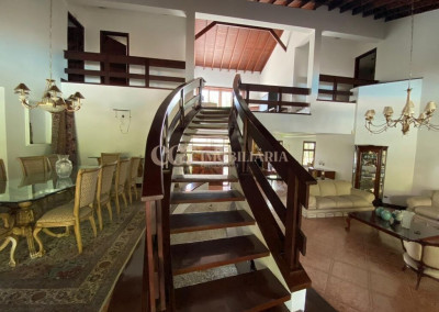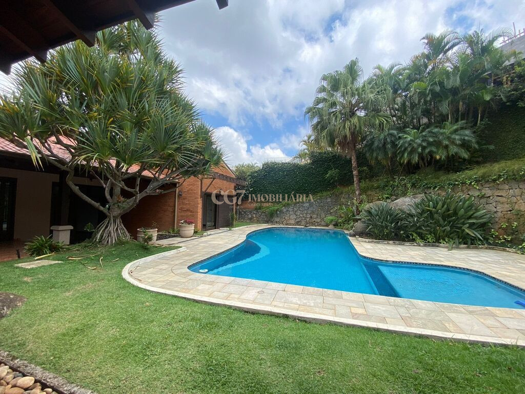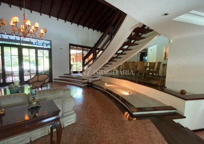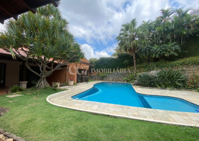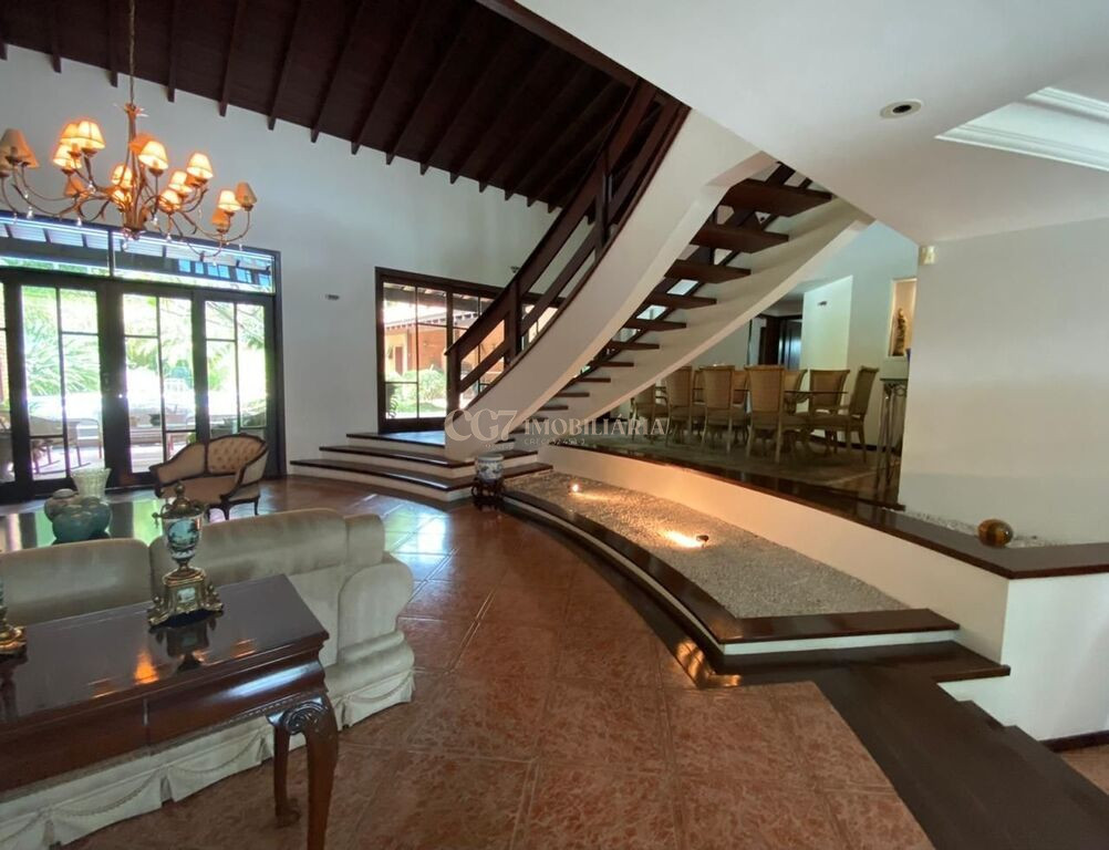Casa AT:1.089,93m², AC:586,58m², 4 Suítes, sendo uma suíte de casal localizada no pavimento térreo e as demais no superior(Mezanino), Sala 3 ambientes, Lavabo, Lavanderia, Jardim central, Jardim com acesso por escada, Varanda com churrasqueira, Banheiro com sauna. Piscina, *Casa para funcionário: Copa, Cozinha, Sala, Dormitório, Lavanderia, Despensa podendo ser um outro dormitório. Foro: R$635,00 Mensal cg7imoveis c7imoveisalphaville