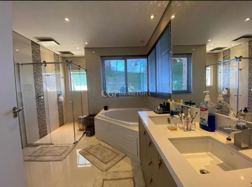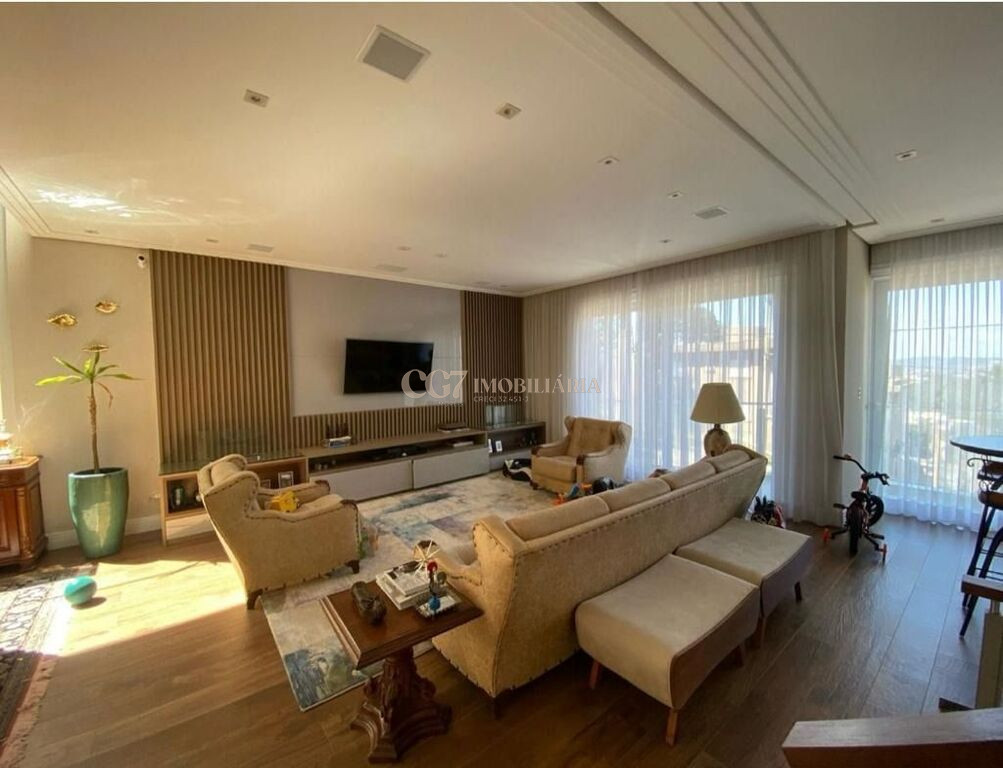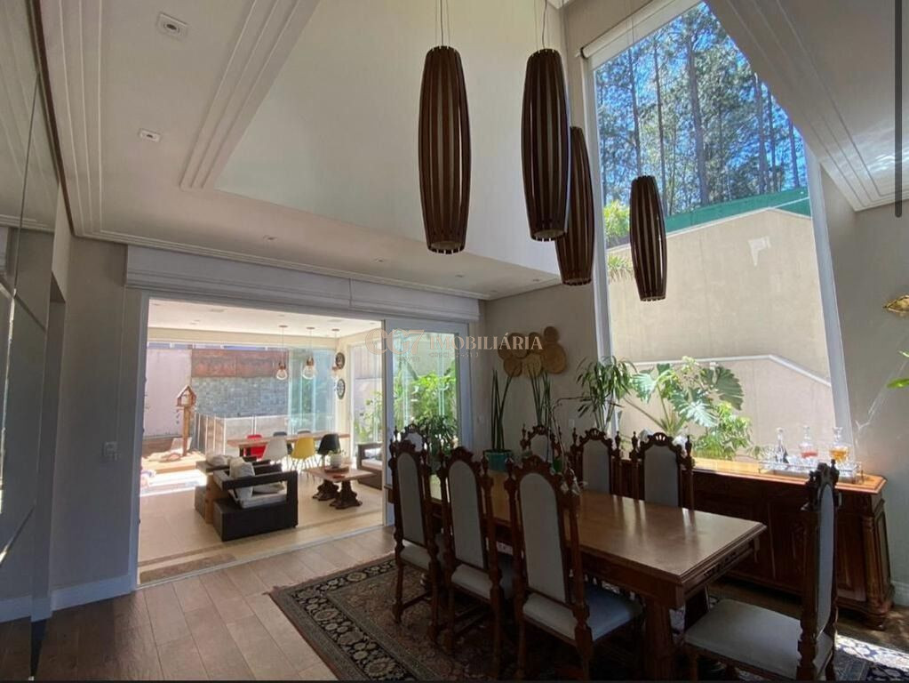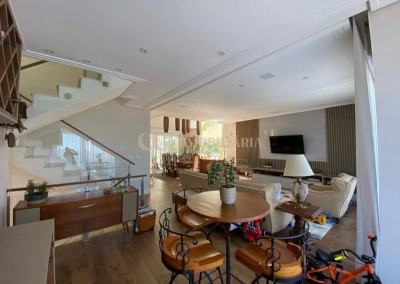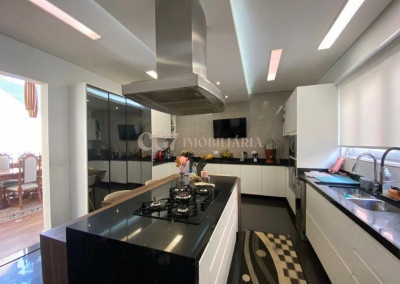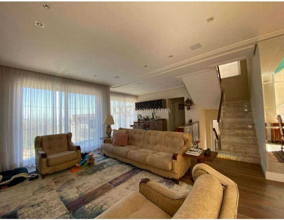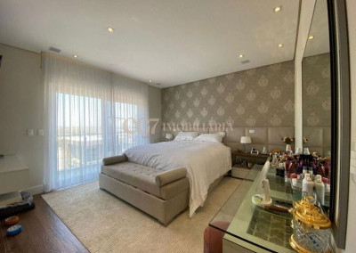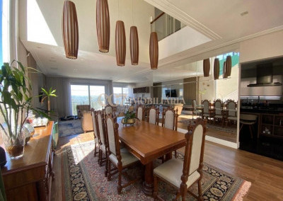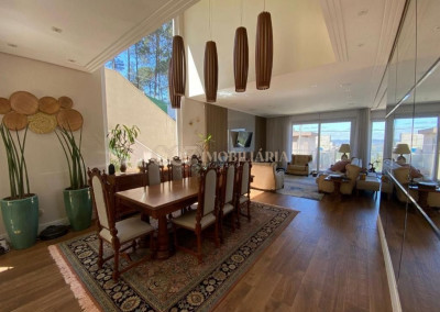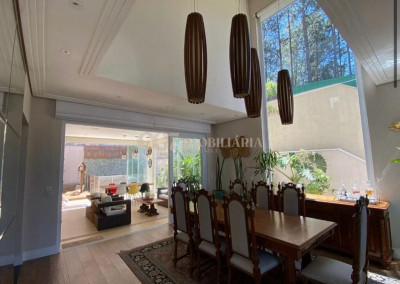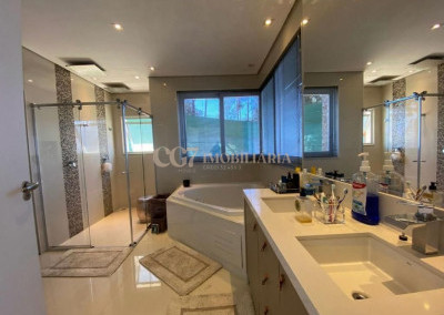 Casa a Venda AT:387m², AC:410m², No andar superior, 4 Suítes com armários planejados, Suíte Master com closet e Hidro massagem, todas as suítes com ar condicionado(frio/ quente) e persianas automatizadas, Possui Roupeiro, Andar térreo Lavabo, Living 3 ambientes, um deles com 2 Lareiras biofluído, Cozinha e Lavanderia com móveis planejados, Bar e Adega para vinho, Escritório planejado, Área externa Churrasqueira, Forno de pizza, banheiro, Piscina aquecida, Deck de madeira ao lado da piscina, amplo com pergolado coberto com dois pés de maracujá doce, Pomar com árvore frutíferas (Goiaba, amora, limão siciliano, laranja, maracujá, jabuticaba, atemoia e lichia), Jardim de frente decorado com palmeira azul, 2 Vagas cobertas, 2 Vagas descobertas. CG7imoveis