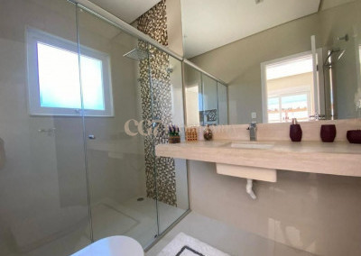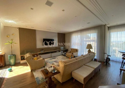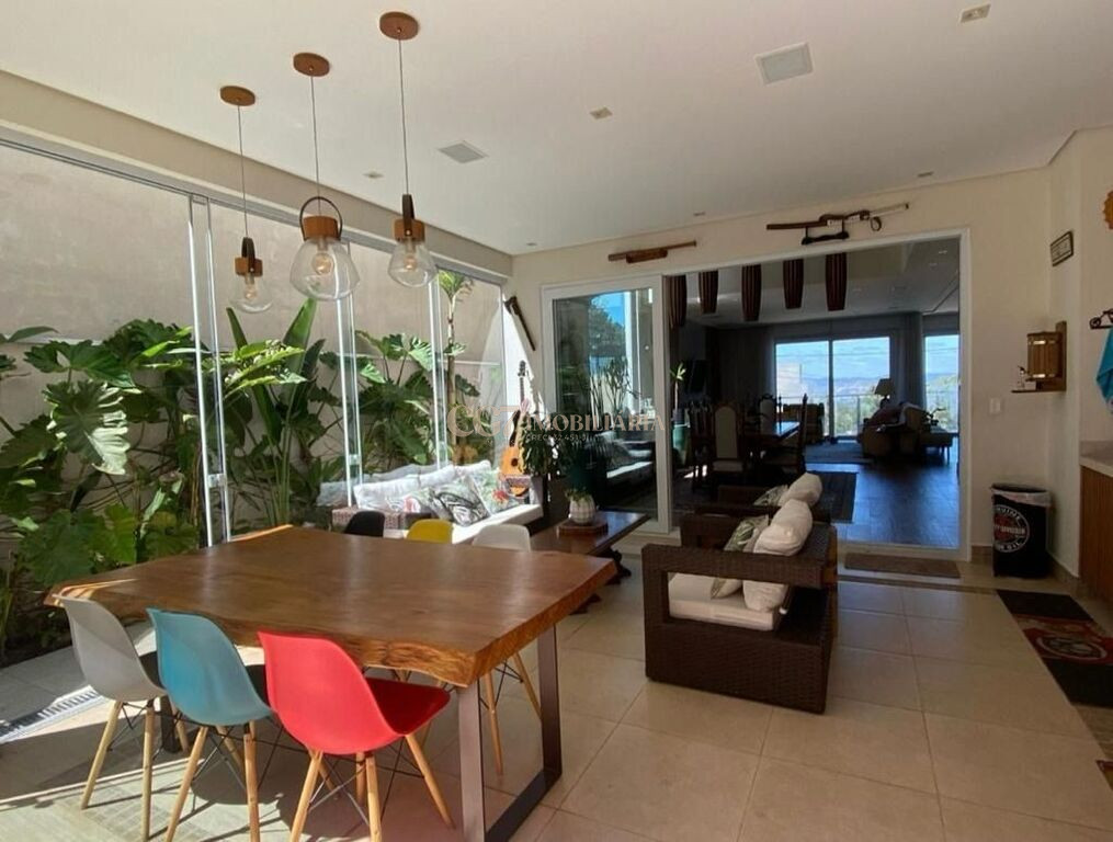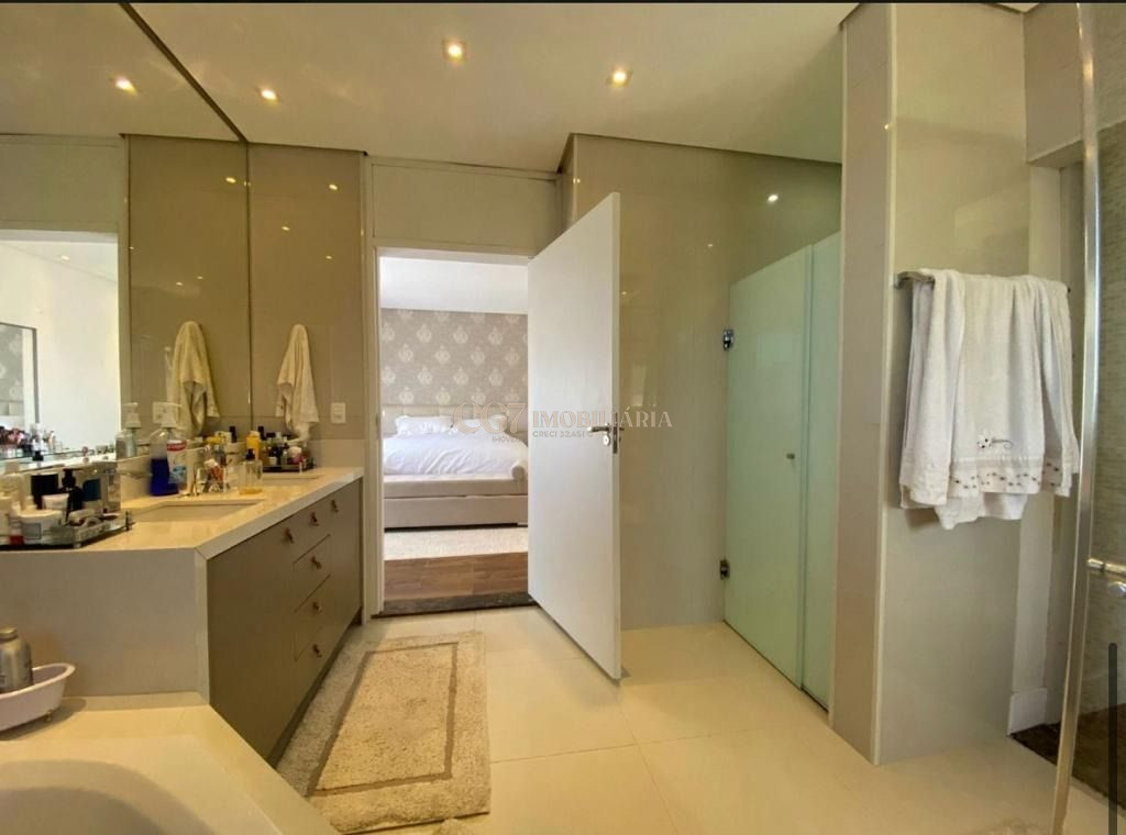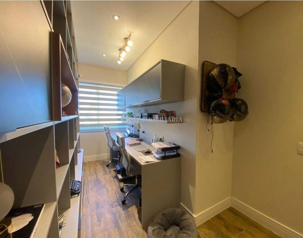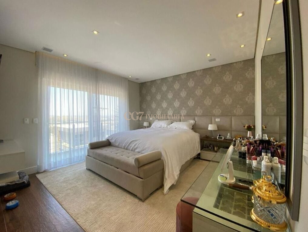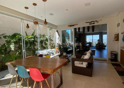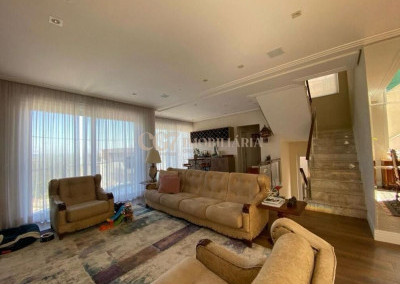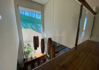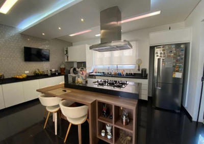 Casa a Venda AT:387m², AC:410m², No andar superior, 4 Suítes com armários planejados, Suíte Master com closet e Hidro massagem, todas as suítes com ar condicionado(frio/ quente) e persianas automatizadas, Possui Roupeiro, Andar térreo Lavabo, Living 3 ambientes, um deles com 2 Lareiras biofluído, Cozinha e Lavanderia com móveis planejados, Bar e Adega para vinho, Escritório planejado, Área externa Churrasqueira, Forno de pizza, banheiro, Piscina aquecida, Deck de madeira ao lado da piscina, amplo com pergolado coberto com dois pés de maracujá doce, Pomar com árvore frutíferas (Goiaba, amora, limão siciliano, laranja, maracujá, jabuticaba, atemoia e lichia), Jardim de frente decorado com palmeira azul, 2 Vagas cobertas, 2 Vagas descobertas. CG7imoveis