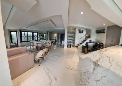 Casa com 360m² a venda 360m² Com: Sala de almoço, Sala de cinema, Sala de estar, Sala de jantar, Cozinha, 3 Suítes, Escritório, Ateliê, Banheiro social, Lavabo, Varanda, Vestiário, Piscina e 4 Vagas de garagem. Condomínio Alphaville 6 O Alphaville 6 é um condomínio fechado de alto padrão, com amplas áreas residenciais, ruas arborizadas, e infraestrutura voltada para o conforto e segurança dos moradores. Algumas características que marcam o local: Segurança 24 horas: O condomínio é extremamente seguro, com monitoramento constante e vigilância, tanto nas entradas quanto nas ruas internas. Infraestrutura de lazer: O Alphaville 6 oferece uma ampla gama de opções de lazer, como piscinas, quadras de tênis, futebol e basquete, academias, salões de festas, entre outros. A ideia é proporcionar qualidade de vida sem sair do próprio bairro. Áreas verdes: Há muitos espaços de convivência ao ar livre, com jardins e áreas de recreação, o que traz um toque de natureza ao ambiente urbano. Arquitetura: As casas no Alphaville 6 são, em sua maioria, grandes e com projetos arquitetônicos modernos, com fachadas imponentes e acabamentos de alto padrão. Arredores do Alphaville 6 O entorno do Alphaville 6 também contribui para a sua atratividade, oferecendo comodidade e facilidades aos moradores. Alguns aspectos do bairro e arredores: Acesso e localização: O condomínio está muito bem localizado, com fácil acesso a importantes vias da região, como a Rodovia Castello Branco, o que garante um bom deslocamento para a capital e outras cidades da Grande São Paulo. Comércio e serviços: Nos arredores, é possível encontrar shopping centers de grande porte, como o Shopping Alphaville, que oferece uma variedade de lojas, restaurantes, cinemas e outras opções de entretenimento. Além disso, há supermercados, academias e outros estabelecimentos comerciais. Escolas e educação: A região também conta com boas opções de escolas, tanto públicas quanto particulares, o que a torna atraente para famílias com filhos. Saúde: Existem clínicas e hospitais de alta qualidade nas proximidades, além de serviços médicos e de saúde de excelência. Agende a sua visita CG7 Imóveis.