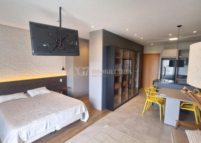 Studio para Locação 45,72m², 1 Dormitório, 1 Banheiro, 1 vaga de garagem coberta. O imóvel está localizado em um andar alto, ar-condicionado, varanda, móveis sob medida, Não aceita animais de estimação. O condomínio oferece diversas facilidades para os moradores e usuários: Piscina coberta aquecida Academia completa Sauna Cyber laundry (lavanderia compartilhada com lounge) Lobby independente para residências e escritórios. Situado próximo à Via Parque de Alphaville, o Link Studios & Offices está a cerca de 5 minutos de carro do Centro Comercial de Apoio de Alphaville, que oferece uma ampla variedade de lojas, restaurantes e serviços, incluindo padarias, farmácias, supermercados e bancos. A região também conta com instituições de ensino como as escolas Universitário e Objetivo, além da faculdade Unip . O empreendimento possui fácil acesso às principais vias da região, como a Rodovia Castello Branco, Rodoanel e Rodovia Anhanguera, facilitando a mobilidade para outras áreas da Grande São Paulo .