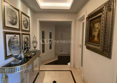 Casa a Venda 360m² de terreno 371,25 m² de construção Três andares Térreo: Escritório, Lavabo, Sala para dois ambientes, Cozinha, Lavanderia. Piso superior: 4 suítes, sendo uma com closet e banheira, três delas com terraço, Sala de lareira com terraço. Piso inferior: Salão de festas, Lavabo, Depósito, Copa de apoio, Área gourmet: Churrasqueira e coifa, Piscina e toldo elétrico com 10m de extensão, Sistema de aquecimento de troca de calor, Dependência de empregada. Garagem coberta para dois carros, Atelier com terraço. Boiler e placas solares. Piso das áreas comuns em crema marfil. Cozinha em granito, repleta de armários. Piso externo em pedras naturais, acesso a garagem em mosaico português. Estrutura e Lazer O condomínio oferece uma das melhores áreas sociais e esportivas da região, incluindo: Alpha Business, Quadras de tênis, Poliesportiva e de vôlei de praia, Campo de futebol, Canchas de bocha, Pista de skate e bicicross, Pista de cooper com área de alongamento, Playgrounds e praças arborizadas, Áreas gourmet e churrasqueiras, Além disso, o condomínio dispõe de portaria 24 horas, academia, piscina, salão de festas, gás encanado e espaço gourmet na área comum. Arredores O Residencial Alphaville 11 está estrategicamente localizado próximo a diversas comodidades, como escolas renomadas (por exemplo, o Colégio Pentágono – Unidade Alphaville), centros comerciais, restaurantes e serviços diversos. A região de Alphaville é conhecida por sua infraestrutura completa e qualidade de vida, sendo uma das mais valorizadas da Grande São Paulo CG7 Imóveis