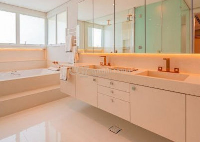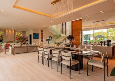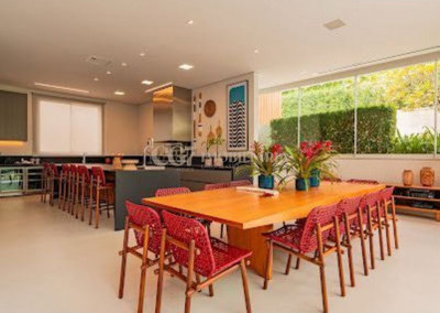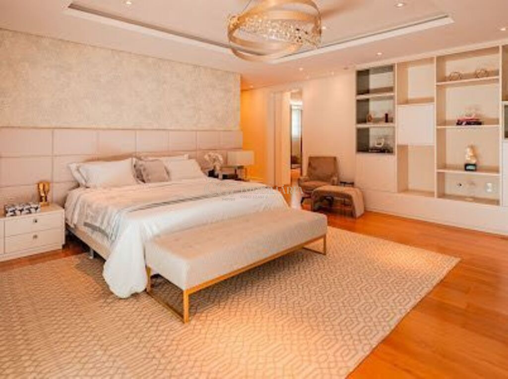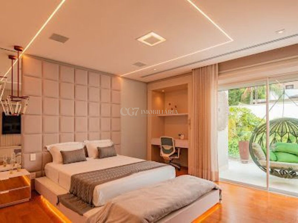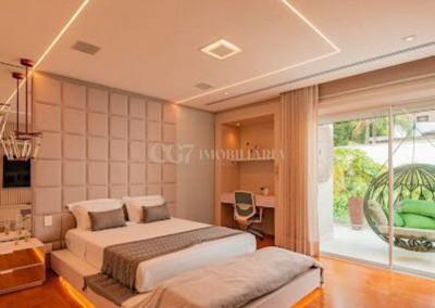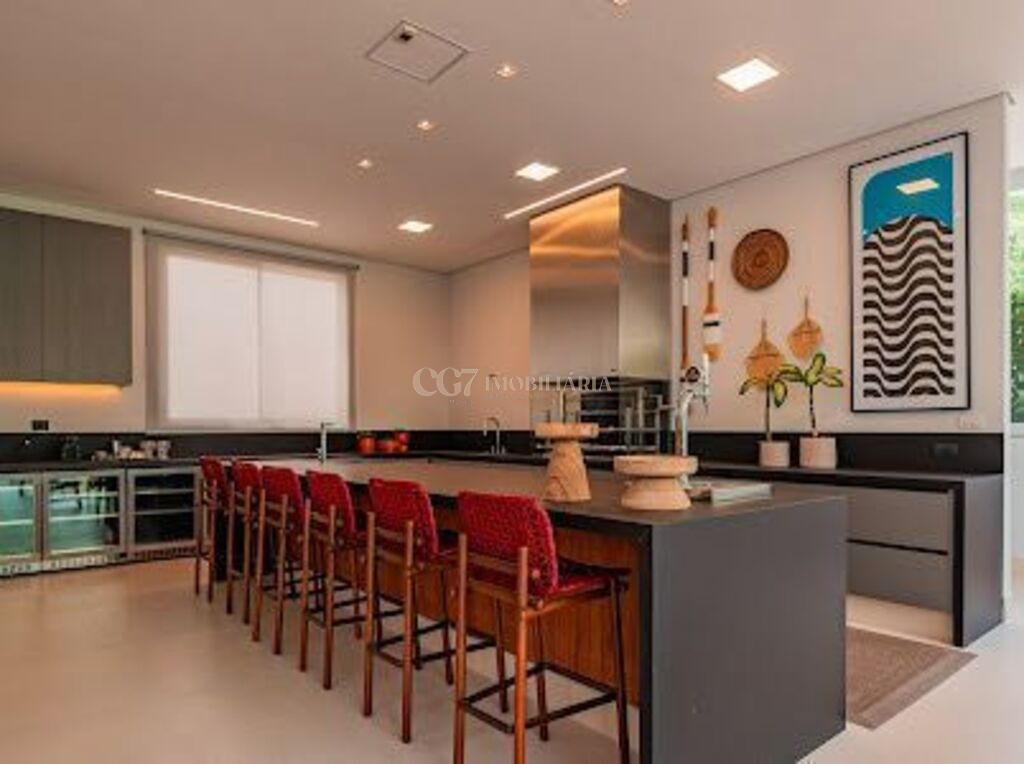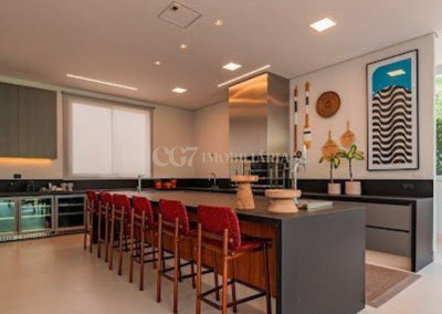 Casa de 1.160m² á venda – Condomínio Alpha 1, Alphaville Dados do Imóvel Área do terreno: 1.280 m² Área construída: 1.160 m² Localização: Condomínio Alpha 1, Alphaville – região nobre e tradicional, com segurança reforçada e infraestrutura completa Destaques Arquitetônicos e Sustentabilidade Projeto assinado por Leonice Alves, com foco em alto padrão, tecnologia e elegância sustentável Fachada imponente revestida em Travertino Navona Hall de entrada com pé-direito duplo e lustre Scatto com cristais e folheado a ouro Obras de arte de renomados artistas como Carlos Araujo, Claudio Tozzi e escultura de Diego Rodrigues Automação completa, com Wi-Fi em toda a casa e aspiração central Captação de água da chuva Painéis solares para aquecimento de água Placas fotovoltaicas para geração de energia elétrica Gerador de energia a diesel da marca Caterpillar Sistema de irrigação automatizado Ambientes Internos 5 suítes amplas, com piso em madeira Indusparquet, som ambiente e banheiros em Silestone e mármore Suíte máster com 95 m², closet climatizado, banheiro com banheira, TV e sistema de som Living integrado com mais de 150 m², pé-direito de 3,5 m, ambientes de estar, jantar e lareira em Dekton Calacata Lavabo com bancada em Dekton Calacata Escritório completo Adega Art des Caves com capacidade para mais de 300 rótulos Cinema privativo com paredes acústicas, projetor 4K e tela de 133" Elevador Otis atendendo os três pavimentos Climatização central Daikin Área íntima com varanda de 45 m², lareira e telão retrátil Cozinha e Área Gourmet Cozinha em ilha com eletrodomésticos Gorenje e Bertazzoni Marcenaria de altíssimo padrão Área gourmet com churrasqueira LarGrill, chopeira, cervejeira, frigobar, máquina de gelo e cooktop Eletromec Telão e fliperama integrados à área de lazer Lazer e Bem-Estar Piscina aquecida com revestimento em pedra Hijau, deck Castelatto, borda infinita e parede de vidro Sauna revestida em Hijau com acesso direto da piscina Spa para 6 pessoas Academia equipada Área de fogo de chão Jardim com paisagismo e horta Serviços e Infraestrutura 2 dependências de serviço Área de serviço completa no subsolo com copa e depósitos Garagem coberta para até 10 veículos, com dois pontos de recarga para carros elétricos (um da Porsche) Sistema de câmeras de segurança Tapetes italianos feitos à mão em lã e seda Condomínio Alpha 1 – Alphaville Condomínio fechado de altíssimo padrão, tradicional e consolidado Localização privilegiada na região central de Alphaville Segurança armada 24h com ronda motorizada e controle de acesso rigoroso Proximidade de escolas de renome como Colégio Pentágono, Mackenzie e Objetivo Próximo aos principais centros comerciais da região como Alpha Shopping, Iguatemi Alphaville e Tamboré Fácil acesso à Rodovia Castelo Branco e ao Rodoanel Infraestrutura completa com rede de fibra óptica, serviços de delivery, transporte fretado e ambulatório próprio Agende a sua visita CG7 Imóveis