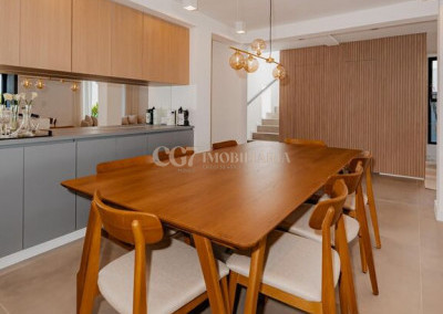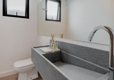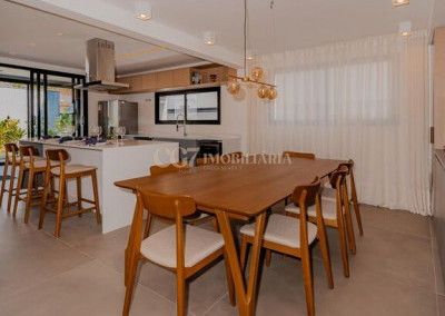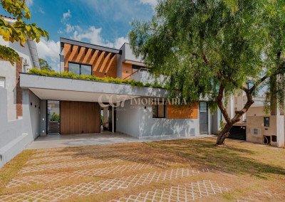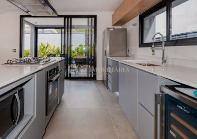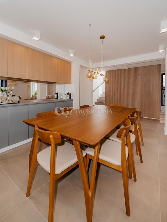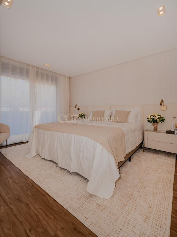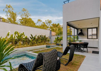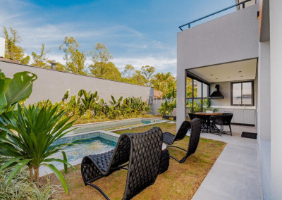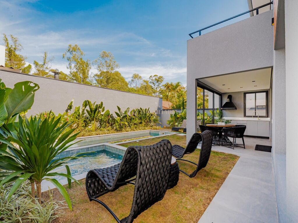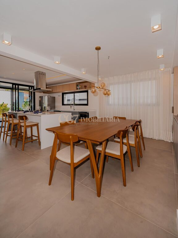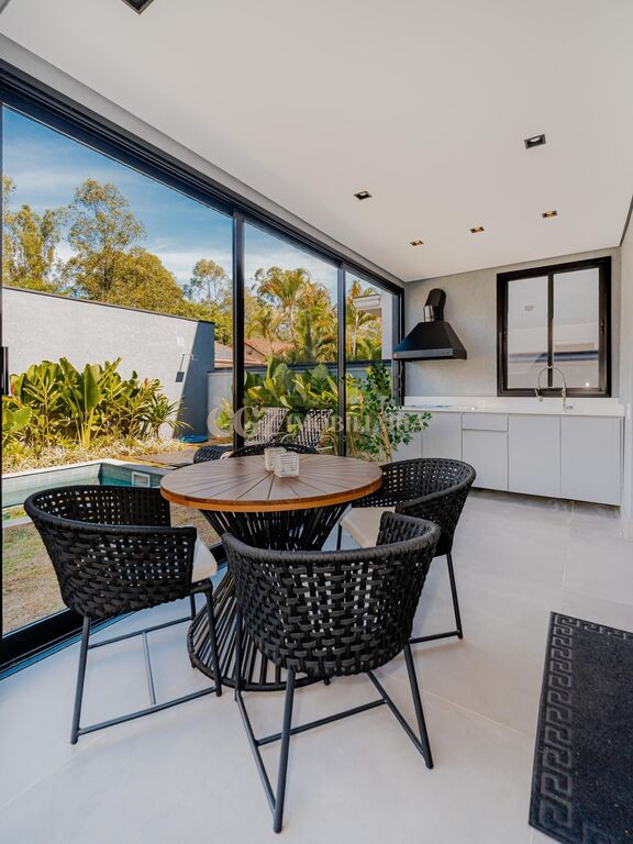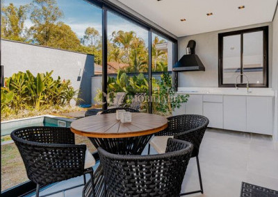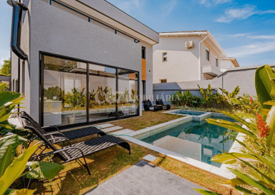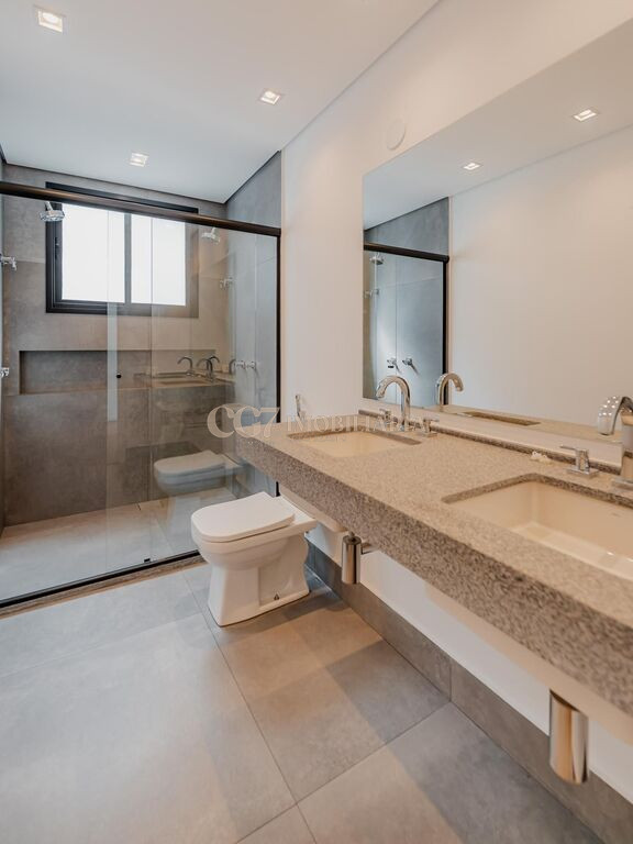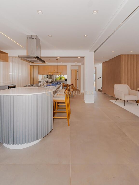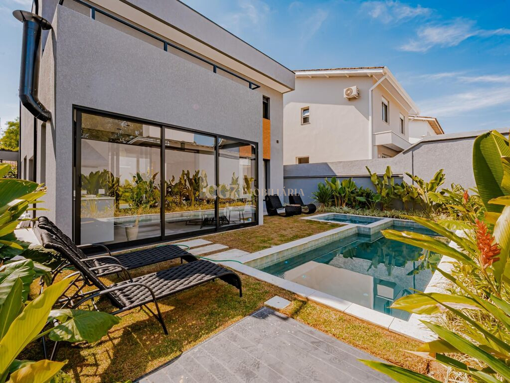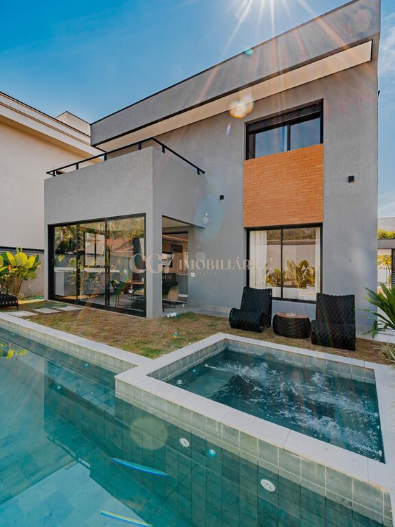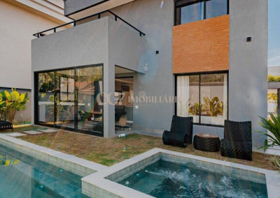 Casa a Venda Área terreno 302,77 m2 Área de construção 317,72 4 suítes, sendo uma térrea reversível para escritório, uma suíte máster (com terraço, closet amplo, banheiro com duas cubas, ducha dupla). Todas equipada com persianas blackout automatizadas através de controle remoto e ar condicionado Living integrado em sala de jantar, sala de estar e cozinha Cozinha estilo americana, com ilha gourmet totalmente equipada Lavabo com acesso mimetizado por painel de madeira ripada Depósito/Despensa oculto pelo mesmo painel ripado com fechadura fecho toque Área de serviço Banheiro de apoio para funcionária Acesso independente lateral Aquecimento de água a gás, com 2 aquecedores embutidos na cobertura Bomba de pressurização para duchas e torneiras embutida na cobertura Reservatórios com capacidade total de 3.000 litros (2x 1.500L) Acabamentos e Revestimentos; Esquadrias de alumínio preto Pisos internos Hall de Entrada, lavabo, sala de jantar, cozinha, sala de estar: Piso Porcelanato Portobello SUPERQUADRA ZINCO 120X120 NAT Bancadas Cozinha, ilha e gourmet: quartzo branco. Banheiros: cinza andorinha levigado. Banheiros Piso Porcelanato portobello superquadra zinco 90x90 ext ret. Área externa Piso Porcelanato portobello superquadra zinco 120x120 ext. Piscina Revestimento BARLAVENTO CARIBBEAN 14.5X14.5 RELEVO EXT BOLD. Borda: Via Acqua borda boleada 22,5x50,00x2,00. Suítes Piso vinílico padrão ospefloor sublime 2mm. Cor: Dakota. Rodapés (áreas secas) Sala, cozinha, sala de Jantar, hall de entrada: Branco MDF premium com friso branco de 10cm. Suítes: Rodapé Branco MDF premium com friso branco de 5cm. Rodapés (áreas molhadas) Rodapé de porcelanato do próprio piso ELETRODOMESTICOS E EQUIPAMENTOS Coifa de Ilha Oster 90 cm com 03 Velocidades, Painel Touch Control - OCFA590 Cooktop 5 Bocas À Gás Electrolux Gt75X Com Acendimento Automático E Mesa De Inox Forno de Embutir a Gás Electrolux 80L Experience com FoodSensor (OE8GF) - Cinza, Convecção, Termômetro de forno Micro-ondas 33L Philco PMO38S Limpa Fácil 1400W Geladeira 434L Philco Smart Cooling Side by Side PRF535ID Ar Condicionado Sala de Estar/TV: EVAP LG DUAL INVERTER VOICE AI 12.000 Q/F 220 V -R32. Lava Louças Philco PLL14ID Digital 14 Serviços Ar Condicionado Suítes: EVAP LG DUALINVERTER VOICE AI 9.000 Q/F 220V - R32 Residência unifamiliar de alto padrão, com arquitetura contemporânea, construída em terreno plano, com projeto paisagístico, iluminação externa e fachada com acabamento em textura projetada com pintura Decor Colors Borracha Líquida flexível e detalhes em revestimento tipo Revestimento Brick Natural Tijolinho Plaqueta Terracota. Telhado embutido e esquadrias em alumínio preto.