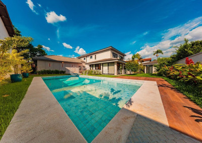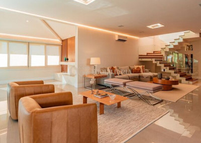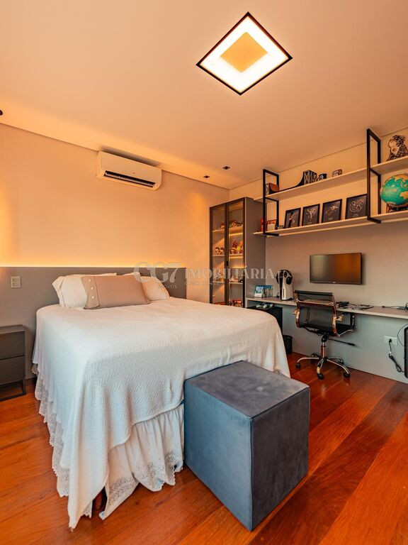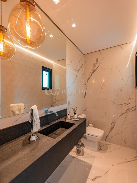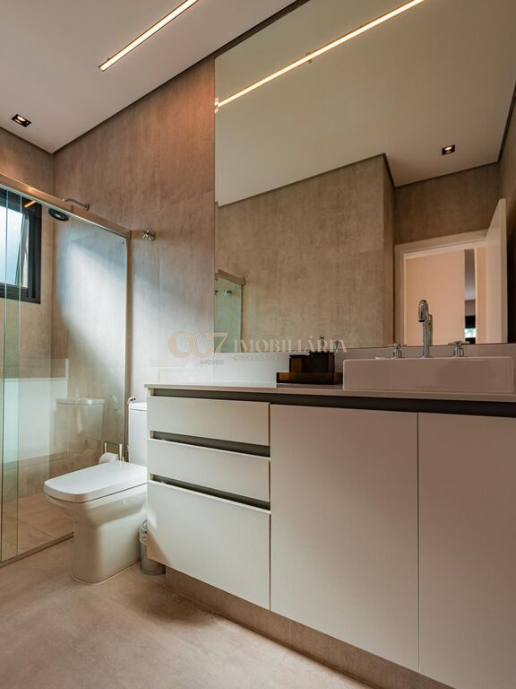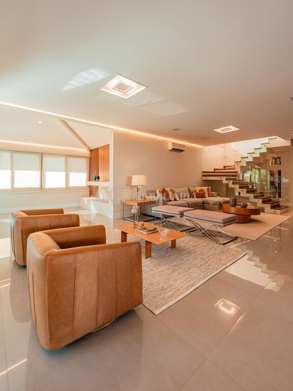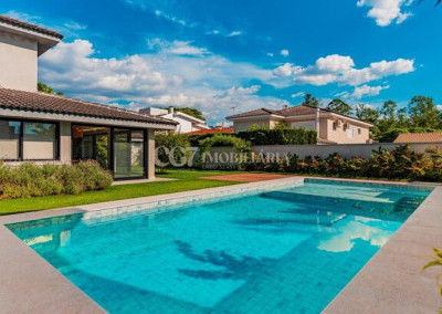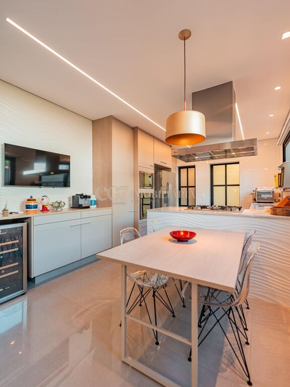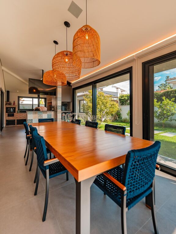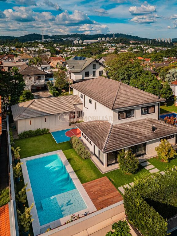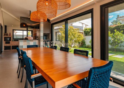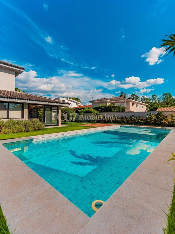 ACEITA PERMURTA: LEVEL, OKA e PRESENTE Porteira Fechada 728,44 m² Terreno 466 m² Área construída 4 suítes sendo uma master Sala de Tv Sala de Lareira Sala de Jantar Cozinha completa Área Gourmet com Churrasqueira Parrilla, Forno de Pizza, Fogão a Lenha, Forno a Lenha Escritório Piscina com prainha Quintal com arvores frutíferas (Jabuticaba, Pitanga, Limão e Mexerica) Meia Quadra Poliesportiva para basquete e futebol Suíte de colaborador Área de serviço 6 Vagas de garagem sendo 3 cobertas Todos os ambientes com Ar condicionado Fujitsu Inverter Sistema de Som ambiente com 02 amplificadores Aquecimento a gás e boiler Móveis Breton Marcenaria SCA Infra para aquecimento da piscina por trocador de calor Esta residência é o refúgio perfeito, que harmoniza conforto, sofisticação e lazer de maneira única. Com 466 m² de área construída em um terreno de 728,44 m², oferece ambientes amplos e acolhedores. A casa dispõe de 4 suítes espaçosas, sendo uma delas máster, além de uma área social integrada, composta pelo living, sala de estar, lareira e jantar, proporcionando um ambiente fluido e aconchegante. A cozinha, totalmente equipada, atende aos mais exigentes padrões, assim como o amplo escritório. Cada ambiente foi cuidadosamente planejado, com atenção a cada detalhe, para oferecer uma experiência de funcionalidade, conforto e sofisticação. A área de lazer se revela como o grande destaque desta casa magnífica. Com 45 m², sua deslumbrante piscina, adornada com prainha, se integra à exuberante área verde com árvores frutíferas de aproximadamente 400 m², criando um ambiente único, que transforma cada momento em uma experiência inesquecível – seja para relaxar, se reconectar com a natureza ou desfrutar de momentos de lazer e convivência ao lado de familiares e amigos. Sua meia quadra poliesportiva convida à prática de esportes, promovendo saúde e oferecendo momentos de diversão e interação. Reunir todos e escolher o menu não será uma tarefa fácil, pois a área gourmet desta residência é meticulosamente equipada com churrasqueira parrilla, forno de pizza, fogão a lenha e forno a lenha, elevando cada refeição a um momento verdadeiramente extraordinário. Um verdadeiro oásis, onde entretenimento, lazer e gastronomia se entrelaçam em perfeita harmonia, garantindo momentos excepcionais para todos. Agende a sua visita CG7 Imóveis