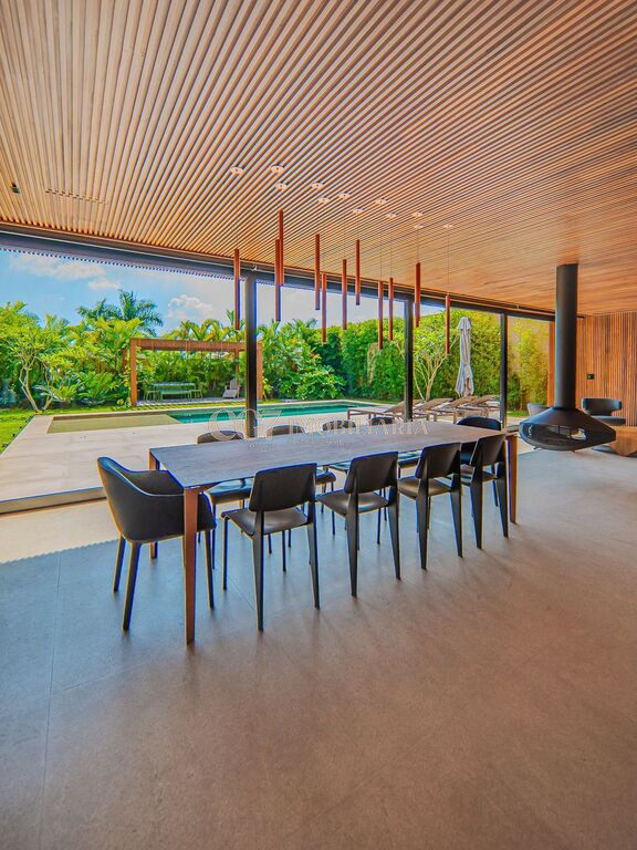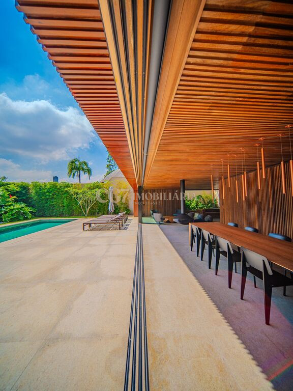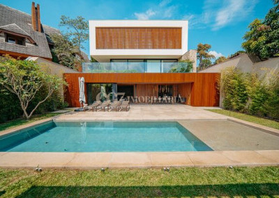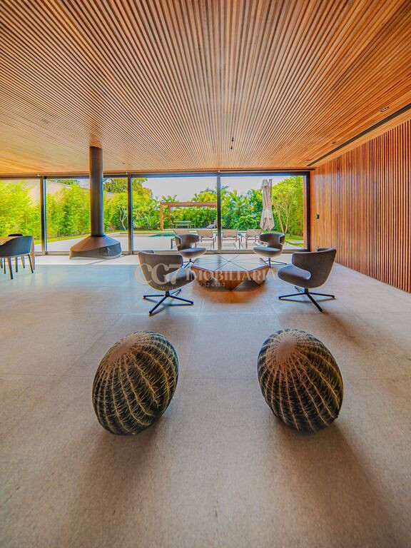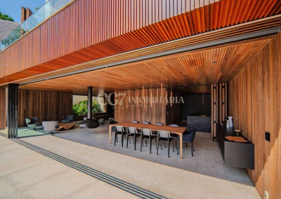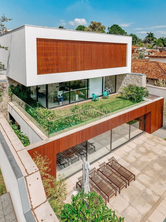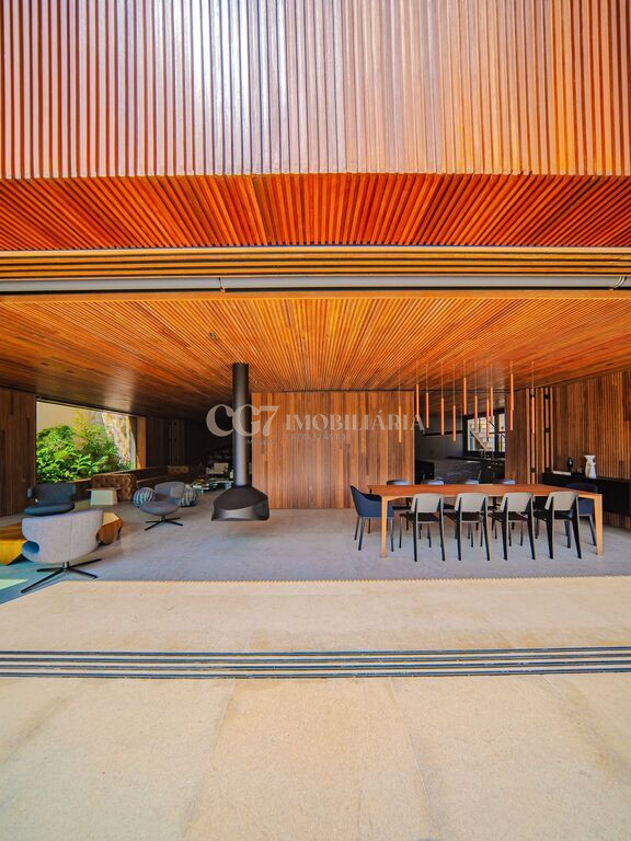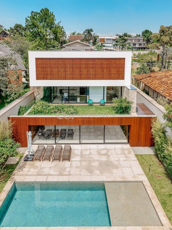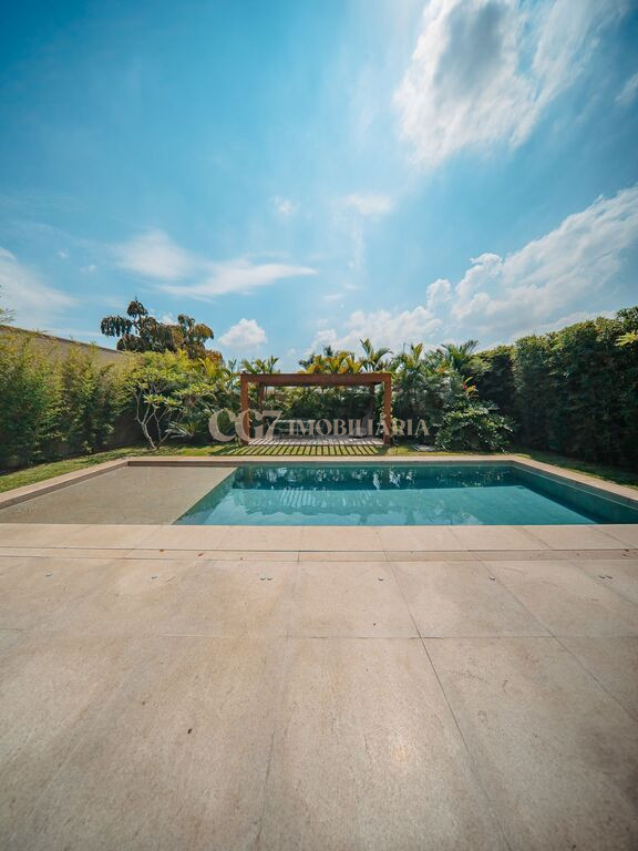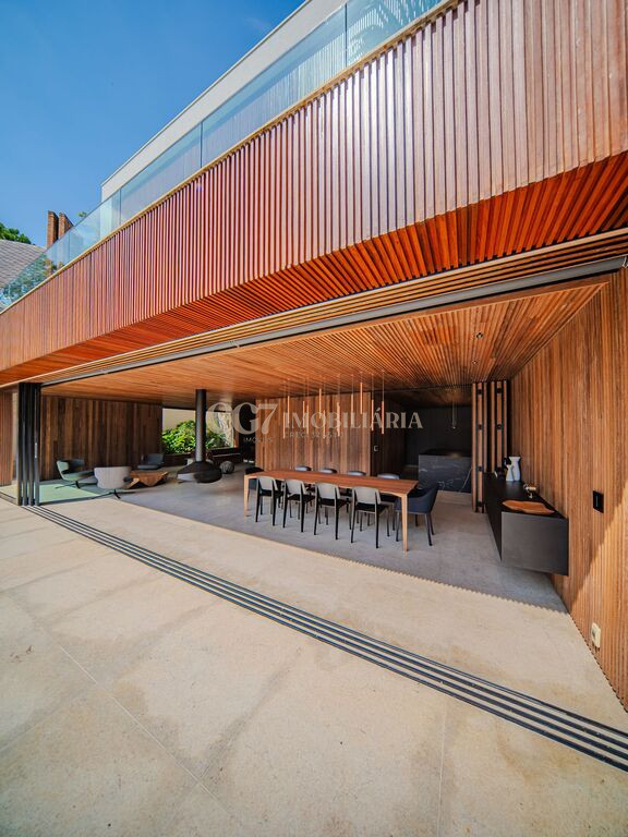 Arquitetura Studio Guilherme Torres Paisagismo Gilberto Elkis Lumino Studio 220V Automação Oguri 682m² Terreno 615,32m² Área construída 4 suítes Escritório Sala de Estar Sala se Jantar Sala de Tv Piscina com prainha de 35m², aquecimento solar e a gás Sistema fotovoltaico Sistema Solar Irrigação do jardim automatizada Ar Condicionado Central Daikin em todos os ambientes Gerador a gás Generac Guardian 17kW Gerador solar fotovoltaica 6,54 kWp Coletores a vácuo solares para aquecimento de água (chuveiro e piscina) Armários Forense Piso de granito Itaúnas levigado Piso nos quartos Madeira cumaru Metais e louças Kohler Esquadria linha Dinaflex 42 em toda a casa Bancada e ilha da cozinha em Nero Marquina italiano Iluminação 100% Led Lumini Blackout e cortinas Hunter Essa moderna casa, situada em um condomínio fechado bem localizado em Alphaville e com completa estrutura de lazer, é um exemplo excepcional da fusão entre a arquitetura contemporânea de Guilherme Torres e o paisagismo de Gilberto Elkis. Com um terreno de 682m² e 615,32m² de área construída, o projeto prioriza não apenas a estética, mas também a funcionalidade, o conforto e a sustentabilidade. Todos os ambientes são abundantemente iluminados pela luz natural, promovendo uma conexão harmoniosa com a natureza, que se estende tanto para o exterior quanto para o interior, utilizando elementos naturais como pedra e madeira. A deslumbrante piscina com prainha de 35m² se integra a uma área externa de 232m², criando um espaço ideal para desconectar-se e relaxar. A casa também conta com quatro amplas suítes, um escritório e um living integrado que une os ambientes de estar e jantar, oferecendo um lar acolhedor e sofisticado para seus moradores. Agende a sua Visita CG7 Imóveis