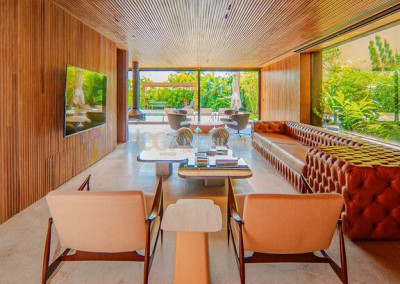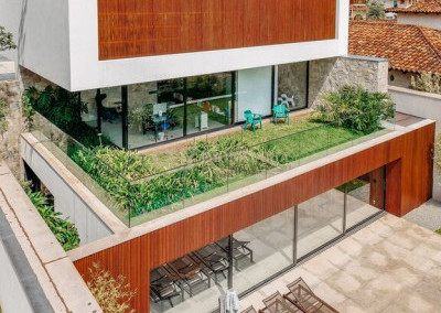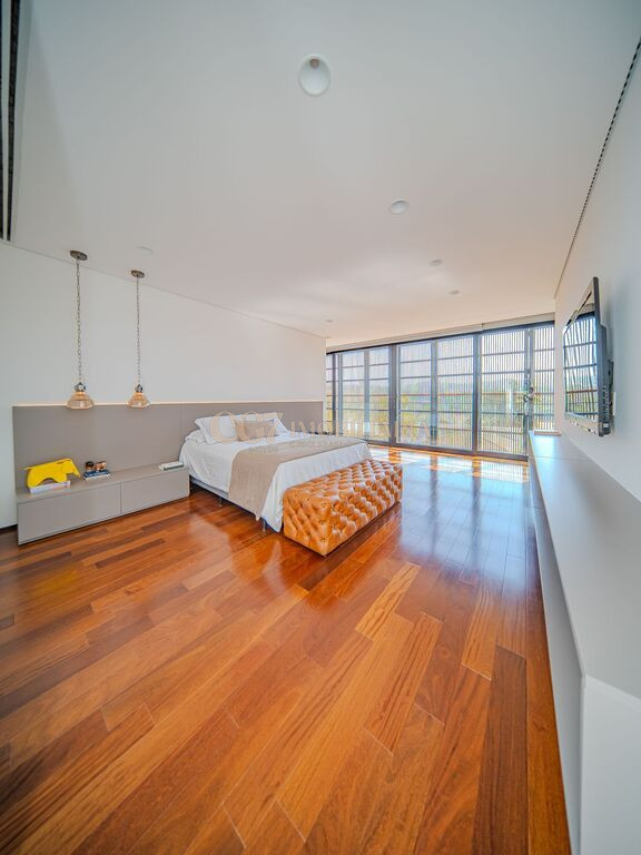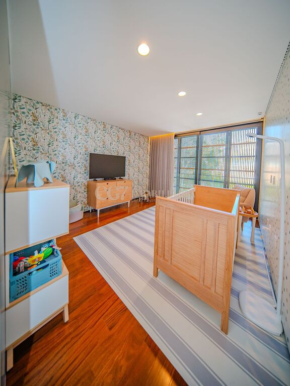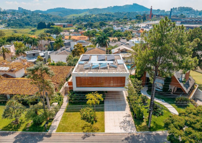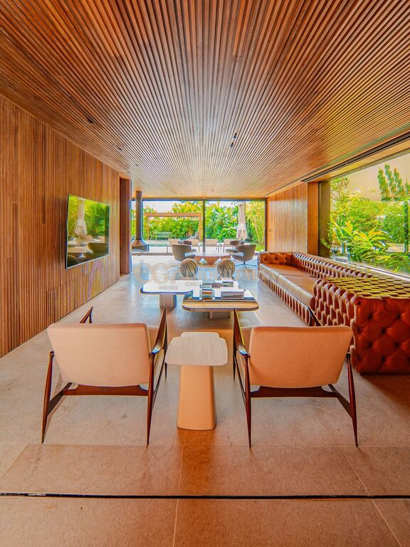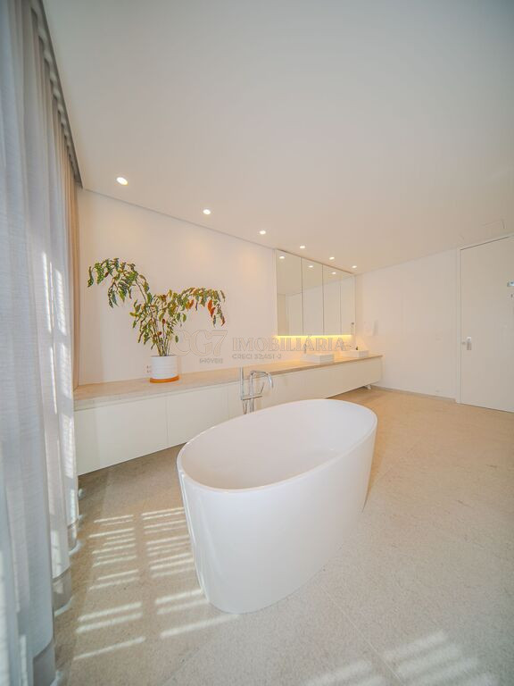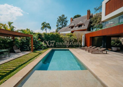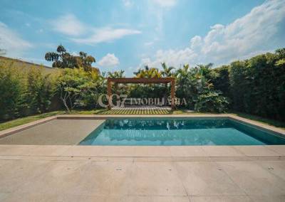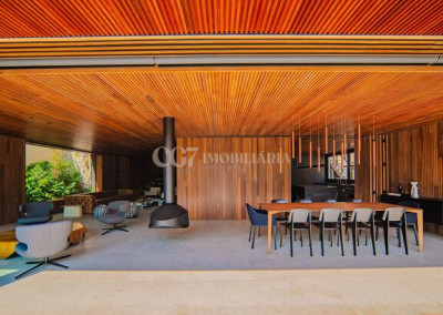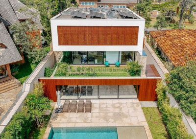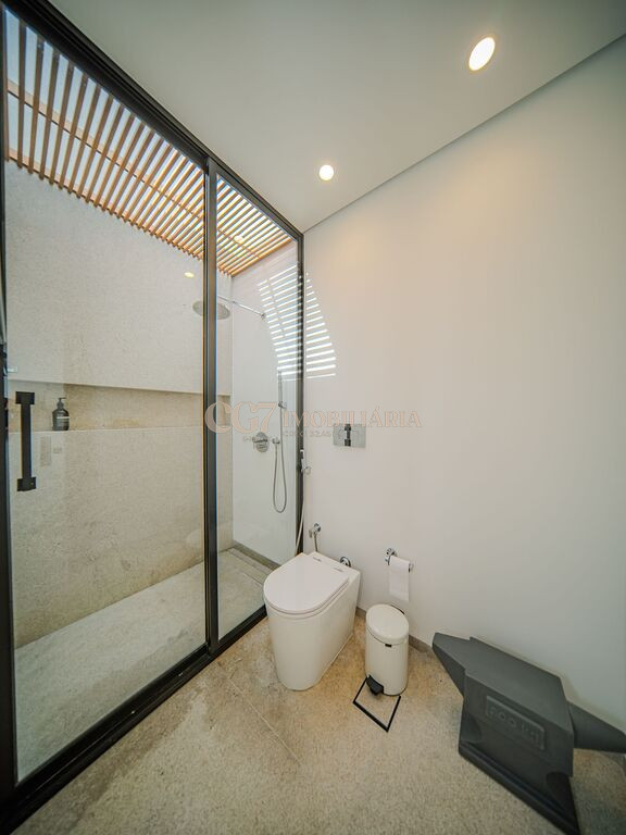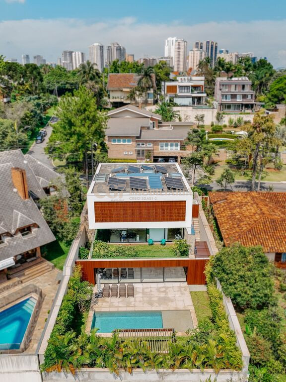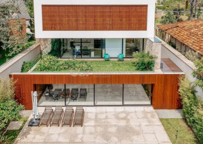 Arquitetura Studio Guilherme Torres Paisagismo Gilberto Elkis Lumino Studio 220V Automação Oguri 682m² Terreno 615,32m² Área construída 4 suítes Escritório Sala de Estar Sala se Jantar Sala de Tv Piscina com prainha de 35m², aquecimento solar e a gás Sistema fotovoltaico Sistema Solar Irrigação do jardim automatizada Ar Condicionado Central Daikin em todos os ambientes Gerador a gás Generac Guardian 17kW Gerador solar fotovoltaica 6,54 kWp Coletores a vácuo solares para aquecimento de água (chuveiro e piscina) Armários Forense Piso de granito Itaúnas levigado Piso nos quartos Madeira cumaru Metais e louças Kohler Esquadria linha Dinaflex 42 em toda a casa Bancada e ilha da cozinha em Nero Marquina italiano Iluminação 100% Led Lumini Blackout e cortinas Hunter Essa moderna casa, situada em um condomínio fechado bem localizado em Alphaville e com completa estrutura de lazer, é um exemplo excepcional da fusão entre a arquitetura contemporânea de Guilherme Torres e o paisagismo de Gilberto Elkis. Com um terreno de 682m² e 615,32m² de área construída, o projeto prioriza não apenas a estética, mas também a funcionalidade, o conforto e a sustentabilidade. Todos os ambientes são abundantemente iluminados pela luz natural, promovendo uma conexão harmoniosa com a natureza, que se estende tanto para o exterior quanto para o interior, utilizando elementos naturais como pedra e madeira. A deslumbrante piscina com prainha de 35m² se integra a uma área externa de 232m², criando um espaço ideal para desconectar-se e relaxar. A casa também conta com quatro amplas suítes, um escritório e um living integrado que une os ambientes de estar e jantar, oferecendo um lar acolhedor e sofisticado para seus moradores. Agende a sua Visita CG7 Imóveis