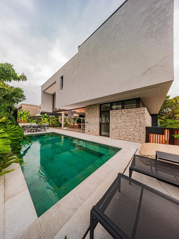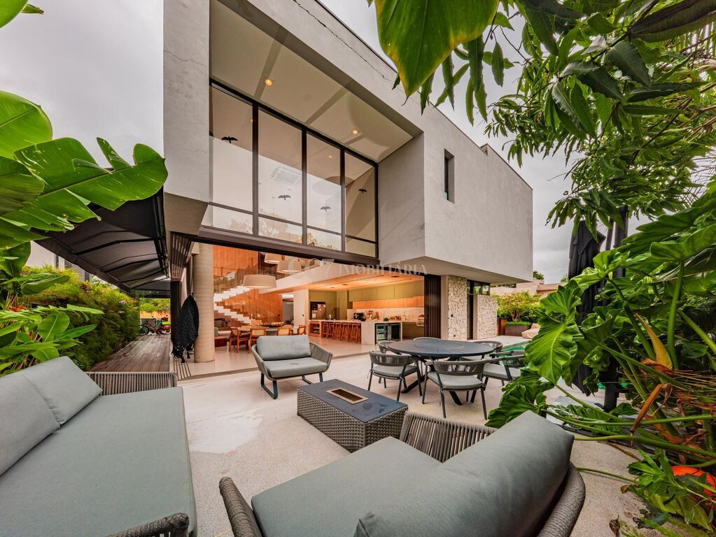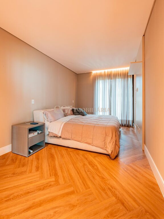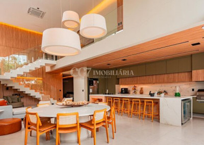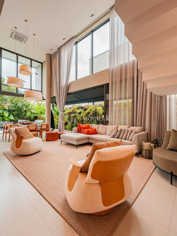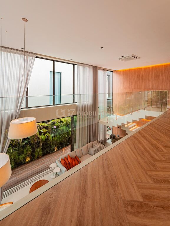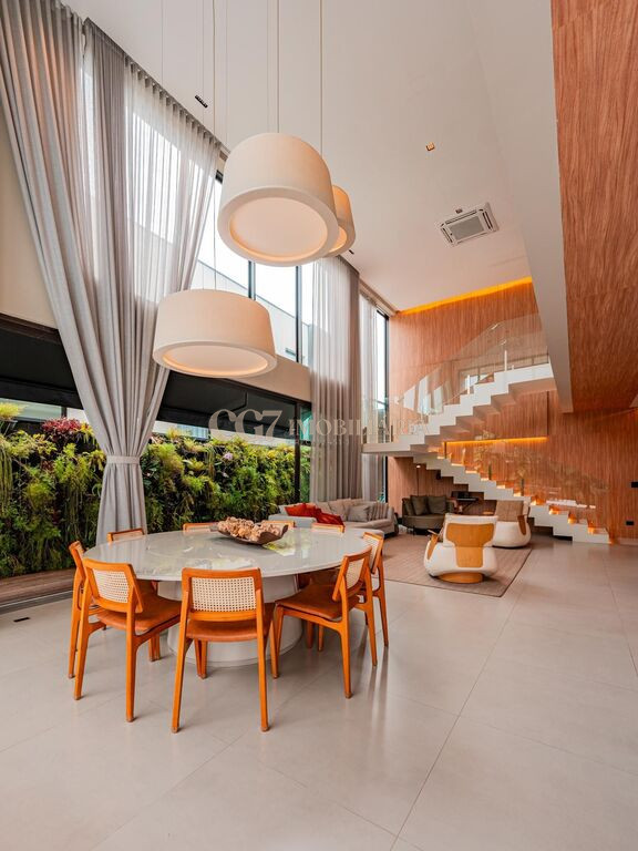 Mobiliada 488,31 m2 de terreno 505,41 m2 área construída 4 suítes com Ar condicionado, sendo uma a máster com closet Living integrado com três ambientes com ar condicionado central Lavabo Sala de TV Piscina revestida em hijau e aquecimento elétrico 6 carros sendo 3 cobertas Carregador para carro elétrico 100% automatizada Som nas áreas da sala, cozinha e piscina Cortinas automatizada Persianas automáticas Design Contemporâneo, esta casa de esquina foi projetada para oferecer uma experiência de vida incomparável, une elegância e funcionalidade em cada detalhe. Com 488,31 m² de terreno e 505,41 m² de área construída, a residência é totalmente mobiliada com acabamentos de alto padrão e uma arquitetura que valoriza a integração dos ambientes. O living integrado, com três ambientes amplos e banhados por luz natural, cria uma atmosfera acolhedora e sofisticada perfeita tanto para momentos em família quanto para receber convidados com estilo. O imóvel conta com 4 suítes planejadas para proporcionar noites de descanso perfeitas, combinando conforto e privacidade. A casa é equipada com automação completa, permitindo o controle de iluminação, climatização e som ambiente em todas as áreas sociais, integrando tecnologia e praticidade ao seu cotidiano. Sua área externa é um verdadeiro refúgio, a piscina revestida em hijau se destaca em meio ao paisagismo exuberante, cuidadosamente desenhado para garantir paz, privacidade e conexão com a natureza. Um ambiente ideal para lazer e contemplação, onde cada detalhe foi pensado para transformar o seu dia a dia em momentos únicos. CG7 Imóveis