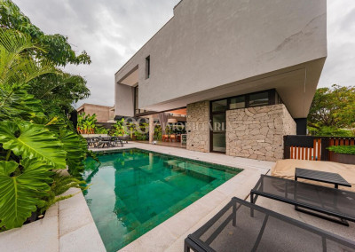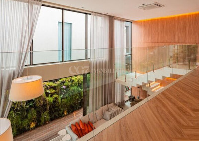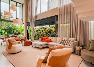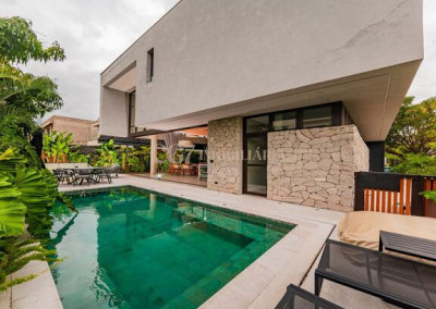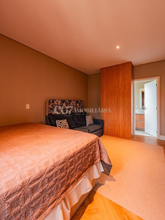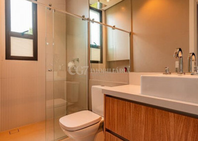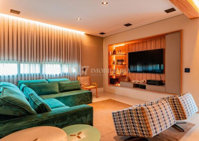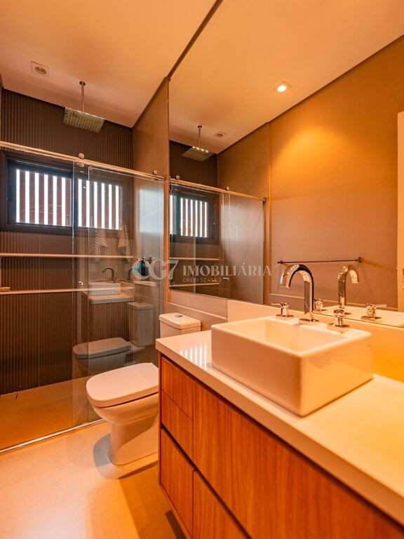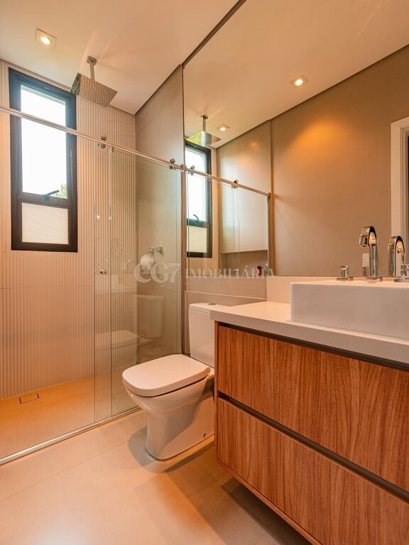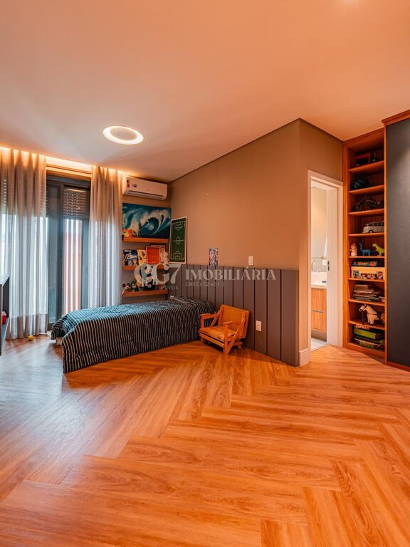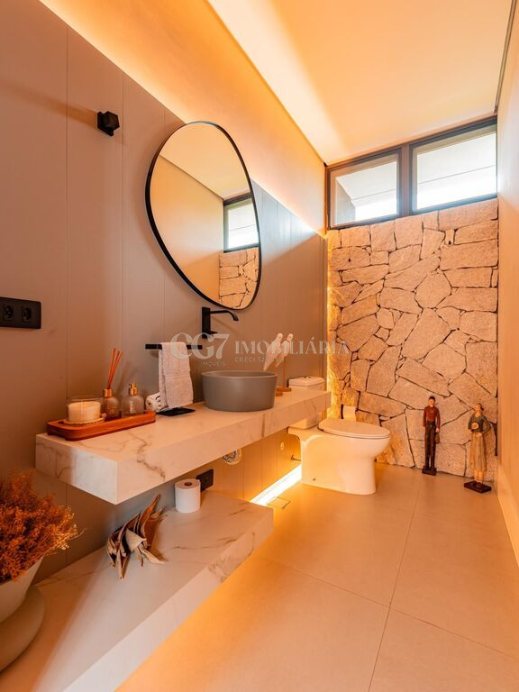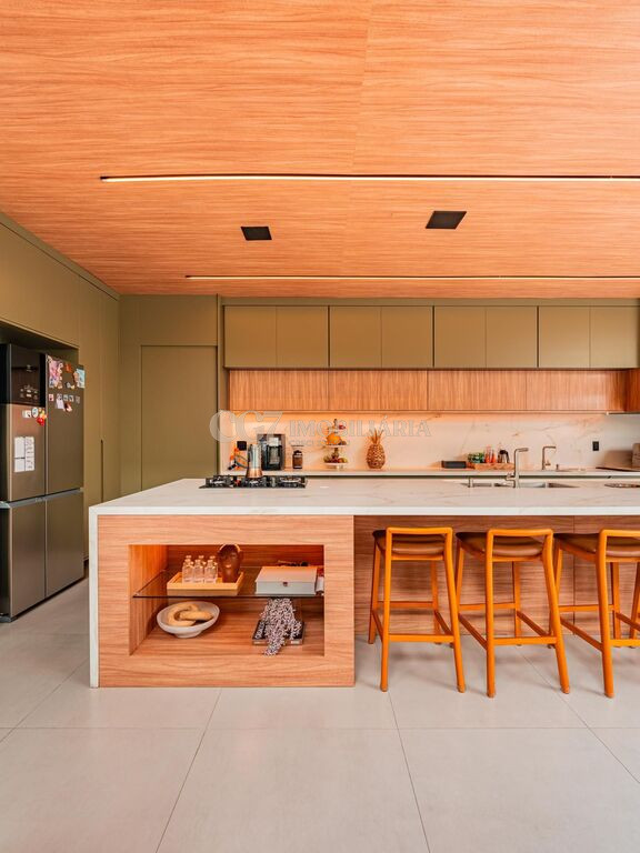 Mobiliada 488,31 m2 de terreno 505,41 m2 área construída 4 suítes com Ar condicionado, sendo uma a máster com closet Living integrado com três ambientes com ar condicionado central Lavabo Sala de TV Piscina revestida em hijau e aquecimento elétrico 6 carros sendo 3 cobertas Carregador para carro elétrico 100% automatizada Som nas áreas da sala, cozinha e piscina Cortinas automatizada Persianas automáticas Design Contemporâneo, esta casa de esquina foi projetada para oferecer uma experiência de vida incomparável, une elegância e funcionalidade em cada detalhe. Com 488,31 m² de terreno e 505,41 m² de área construída, a residência é totalmente mobiliada com acabamentos de alto padrão e uma arquitetura que valoriza a integração dos ambientes. O living integrado, com três ambientes amplos e banhados por luz natural, cria uma atmosfera acolhedora e sofisticada perfeita tanto para momentos em família quanto para receber convidados com estilo. O imóvel conta com 4 suítes planejadas para proporcionar noites de descanso perfeitas, combinando conforto e privacidade. A casa é equipada com automação completa, permitindo o controle de iluminação, climatização e som ambiente em todas as áreas sociais, integrando tecnologia e praticidade ao seu cotidiano. Sua área externa é um verdadeiro refúgio, a piscina revestida em hijau se destaca em meio ao paisagismo exuberante, cuidadosamente desenhado para garantir paz, privacidade e conexão com a natureza. Um ambiente ideal para lazer e contemplação, onde cada detalhe foi pensado para transformar o seu dia a dia em momentos únicos. CG7 Imóveis
