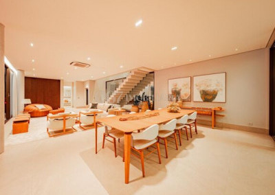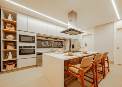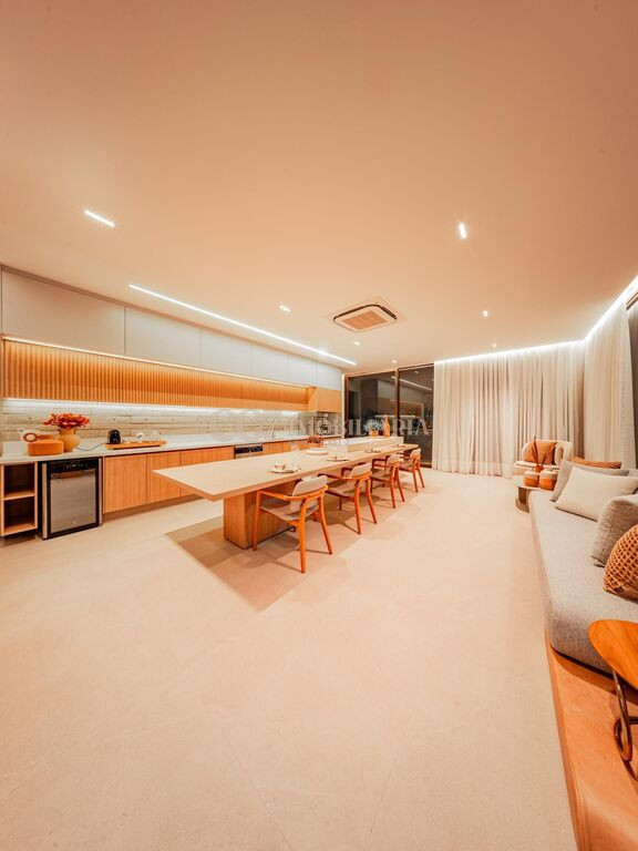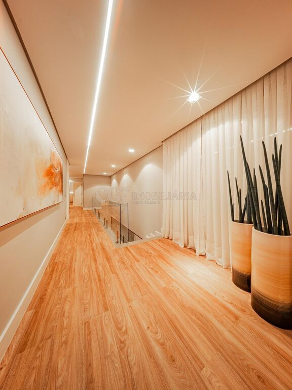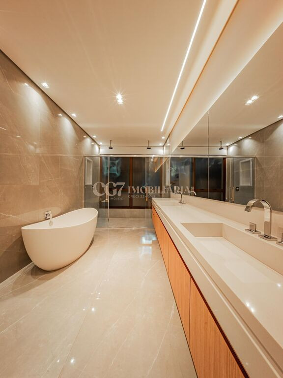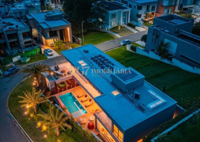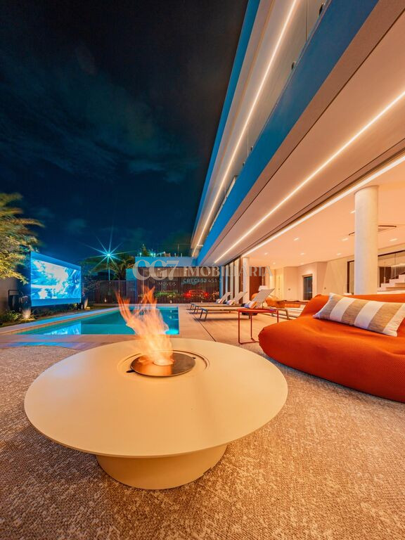 Porteira Fechada Projeto do Arquiteto Rodrigo Latorre Decoração de Katty Kaitazoff 568,94 m² de terreno 511,39 m² de construção 4 suítes amplas suítes com closet sendo a máster com banheira Living integrado; Sala de Estar, Jantar, Cozinha e Gourmet Sala de TV Elevador Lavabo Lavanderia Despensa Piscina com aquecimento solar Telão externo 3x2 com sistema de som Fire Pit Ar condicionado Aquecimento central pressurizado Louças e metais Deca Totalmente mobiliada e decorada com elegância e sofisticação, esta casa de esquina contemporânea, projetada pelo renomado Rodrigo Latorre, decorada por Katty Kaitazoff, está pronta para se tornar o seu novo lar. Localizada no charmoso residencial Villa Solaia. O living apresenta uma integração perfeita entre a área social e excepcional área de lazer, que conta com piscina aquecida e telão. A casa dispõe de quatro amplas suítes com closet, todas com uma decoração moderna e clean. A suíte master é um verdadeiro luxo: seu closet é banhado por luz natural e o banheiro é equipado com banheira, chuveiro e cuba dupla. A cozinha e o espaço gourmet, completamente equipados, elevam cada refeição a uma experiência única, proporcionando o ambiente ideal para reunir familiares e amigos, tornando cada celebração verdadeiramente memorável. Além disso, a casa conta com elevador e uma varanda encantadora, ideal para desfrutar de um lindo pôr do sol ou até mesmo de uma mágica noite sob a luz da lua. Agende a sua visita CG7 Imoveis