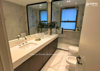 Apartamento a Venda Área útil de 180m², Mobiliado, Planta ampla e bem distribuída, 3 Dormitórios, 3 Suítes (sendo a master com closet e varanda), Living para 2 ambientes com varanda gourmet integrada, Cozinha espaçosa, Lavabo e dependência de serviço, Varanda Gourmet, 3 vagas de garagem + depósito privativo, Comodidades nos arredores: Shoppings (Iguatemi, Tamboré, Alpha Square Mall), Excelentes escolas e faculdades (Escola Internacional, Objetivo, Unip), Restaurantes, cafés e academias, Hospitais e laboratórios, Ciclovias e áreas para caminhadas, Agende a sua visita CG7 Imóveis