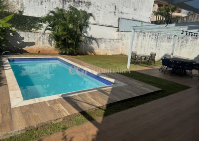 Casa de Alto Padrão, Ampla, arejada e muito bem iluminada, esta casa oferece o conforto e a sofisticação ideais para quem busca viver com qualidade de vida e tranquilidade. Localizada em uma rua tranquila e sem movimentação dentro do Condomínio Residencial 12, em Alphaville, conta com 346m² de área construída em um terreno de 500m². Primeiro Pavimento (Garagem e Acesso Principal): Garagem para 6 veículos (sendo 3 vagas cobertas) Ante sala com porta em alumínio e vidro branco leitoso, com acesso à escada principal Segundo Pavimento (Pavimento Térreo): Hall de entrada Sala de estar Sala de jantar Sala de TV com ar-condicionado e sacada com vista para a rua Sala com lareira Lavabo Escritório com vista para a mata Cozinha em conceito aberto, com bancada em granito integrada à copa Despensa Área de serviço com capacidade para até 4 máquinas Dependência e banheiro de serviço Espaço gourmet completo com: Armários embutidos 01 cristaleira 01 pia 01 churrasqueira com grill Piscina privativa com medidas de 3,50m x 7,00m x 1,40m Terceiro Pavimento: 04 dormitórios, sendo: 01 suíte master com banheiro privativo e ar-condicionado split 01 suíte para hóspedes com banheiro 02 dormitórios com banheiro compartilhado Circulação íntima Sobre o Condomínio Alphaville 12: O Residencial Alphaville 12 é referência em qualidade de vida, segurança e infraestrutura. Conta com segurança 24 horas e diversas opções de lazer e convivência para toda a família: Salões de festas (adulto e infantil) 02 áreas gourmet completas com banheiros e churrasqueiras Parquinhos infantis Campo de futebol society Quadra de areia (vôlei, futevôlei, tênis de areia) 02 quadras de tênis com piso rápido 01 quadra de tênis de saibro Ginásio poliesportivo coberto (inaugurado em 2020) Academia completa Bosques Pista de skate Pista de caminhada Paisagens naturais encantadoras Entre em contato para agendar sua visita e conhecer todos os detalhes deste excelente imóvel!