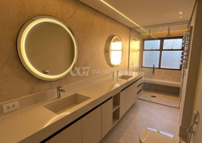 Descrição do Imóvel 3 suítes Suíte master com closet e escritório Sala de jantar, sala de estar, área gourmet e sala de lareira (todas integradas) Home Theater Lavabo Hall de entrada social privativo Cozinha Lavanderia Banheiro de empregada Dormitório de empregada Corredor de acesso aos quartos Roupeiro Demais Informações do Imóvel 5 banheiros Mobília da loja Mix Conceito Marcenaria completa Iluminação em todos os cômodos Ar-condicionado em todos os ambientes (todos com conectividade wi-fi e todos quente e frio) Alexa em todos os ambientes Câmera em todos os ambientes Contêm aspiração central Conectividade com wi-fi em todos os ambientes, são 4 roteadores espalhados que cobrem a internet em todo apartamento Cozinha completa de eletrodomésticos: Geladeira side by side, cooktop, coifa, forno e micro-ondas de embutir, lava louças, filtro de água e triturador Os eletrodomésticos da cozinha estão com garantia estendida de 12 a 24 meses Máquina lava e seca de 12 kg na lavanderia Área gourmet com churrasqueira, adega, cervejeira, frigobar, cooktop e coifa TV's no home theater, área goumert e cozinha Home theater como sistema de som completo Cortina em todos os ambientes Persiana elétrica na área gourmet Porta de entrada principal e porta de entrada de serviço com fechadura eletrônica Acabamentos hidráulicos todos cromados Tomadas USB em todas as suítes Toalheiros elétricos nos banheiros das 3 suítes Condições Comerciais: Aberto a negociação Pagamento à vista Aceito permuta: terrenos na região de Alphaville Não aceito outras permuta e nem carro como forma de pagamento Estudo parcelamento direto Financiamento bancário Pagamento através de consórcio Não está disponível para locação Comissão inclusa no valor de venda Agende a sua Visita CG7 Imóveis