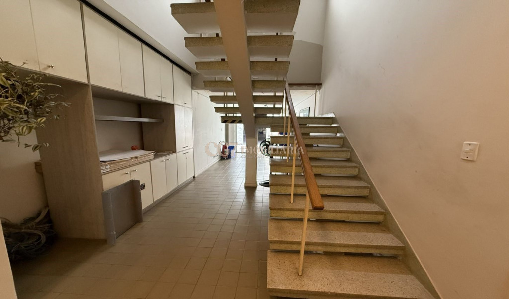 elevador monta-carga, ambulatório, cozinha e refeitório.