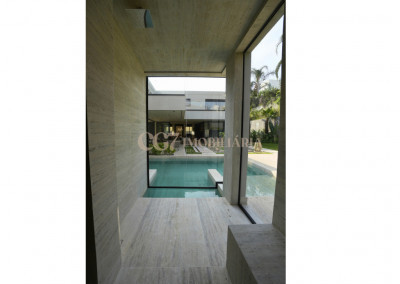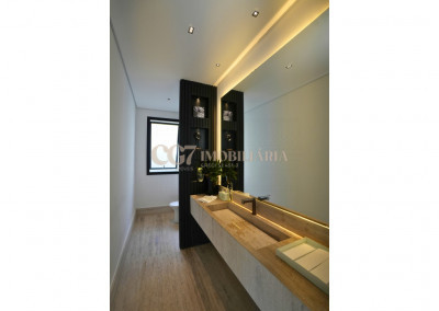 Acabamento nobre: Casa toda em mármore travertino romano.