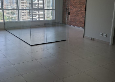 Sala de 55,77m², 2 banheiros, 1 vaga.